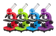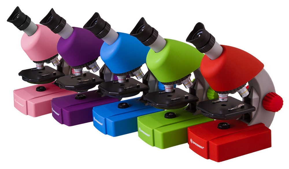 Микроскоп Bresser Junior 40–640x станет отличным проводником в микромир для юных исследователей. Микроскоп снабжен светодиодной подсветкой, имеет удобную ручку фокусировки и надежный зажим для исследуемых препаратов. Ваш ребенок без труда разберется с управлением и настройкой. Увеличения от 40 до 640 крат достаточно для того, чтобы увидеть строение клетки и более подробно изучить весь окружающий мир. Набор для опытов в комплекте. Модель выпускается в четырех ярких цветах: синий, зеленый, красный, фиолетовый, розовый.