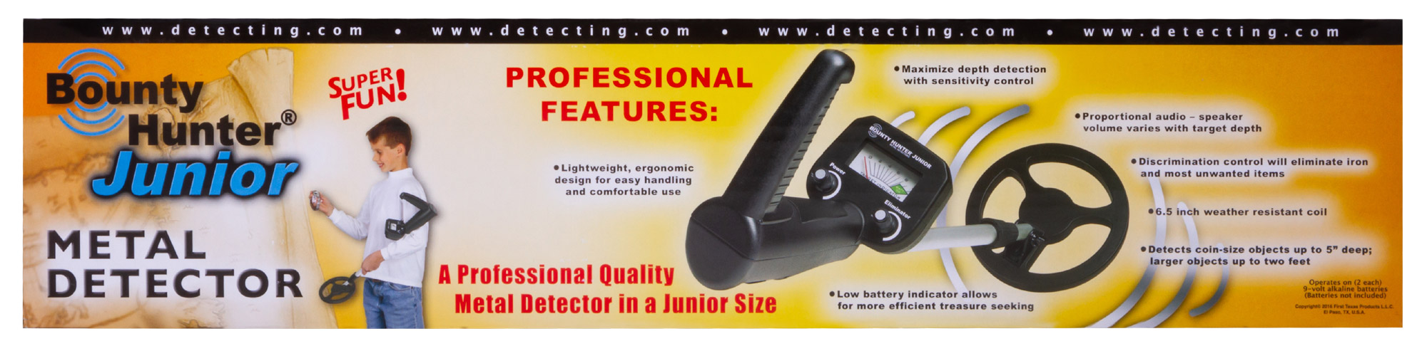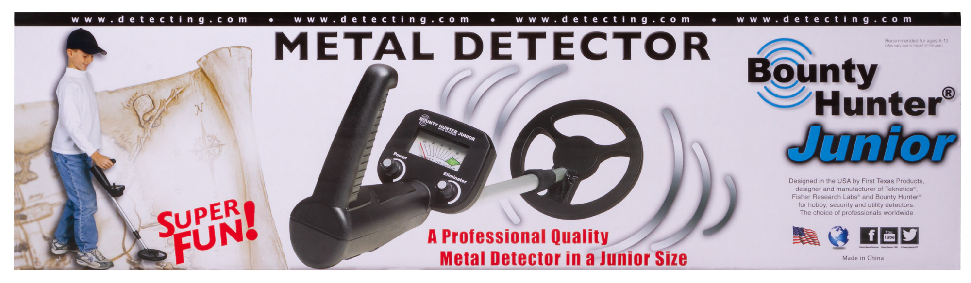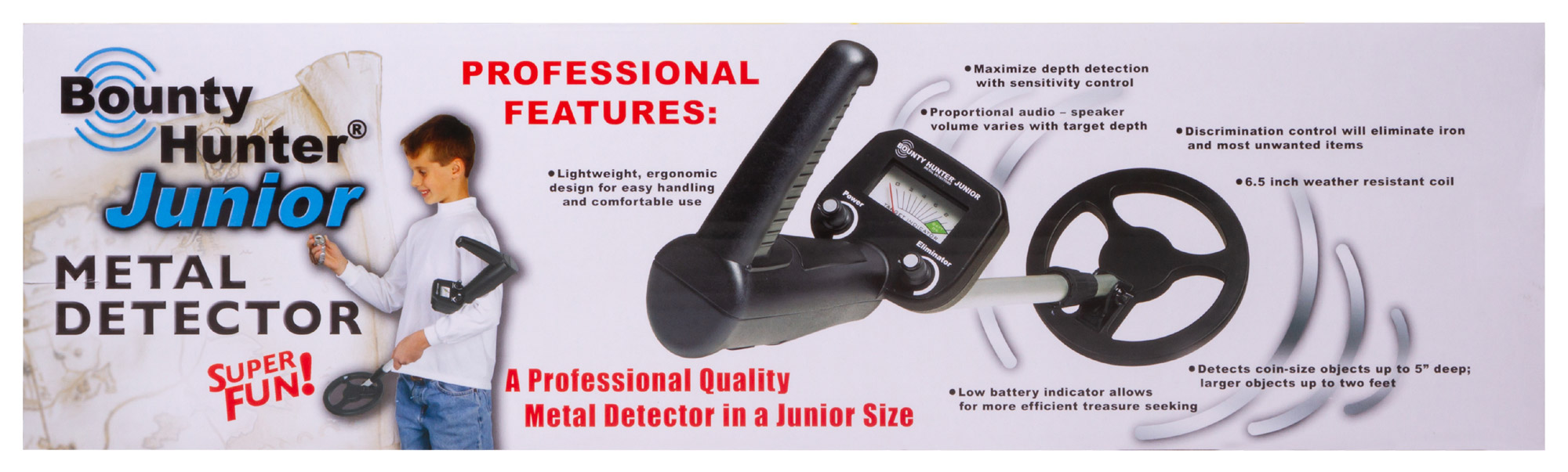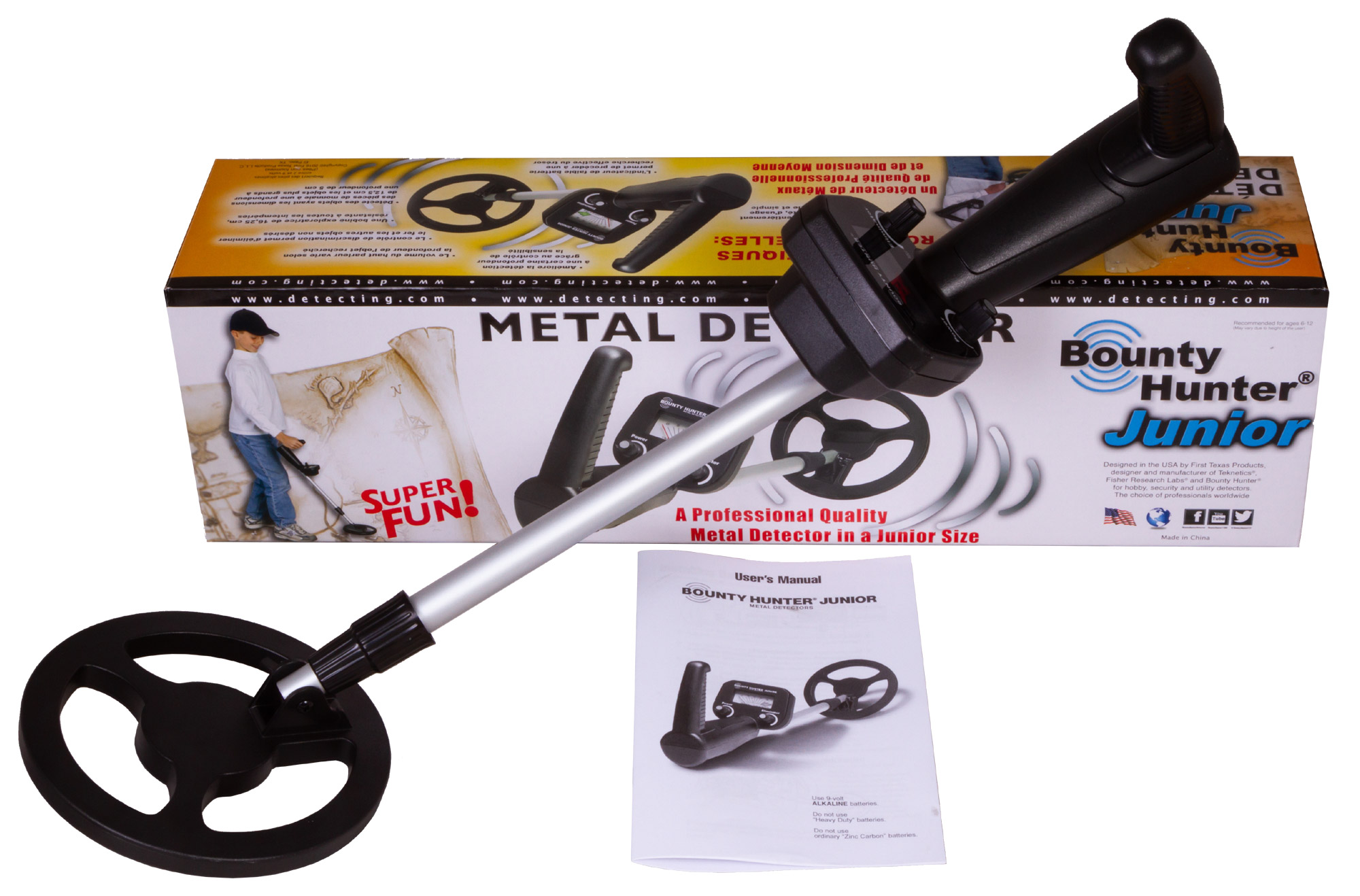Небольшой и легкий металлоискатель Bounty Hunter создан специально для детей. С его помощью можно искать разные металлические объекты, даже совсем маленькие, размером не больше монеты. Диск-искатель защищен от воздействия воды, поэтому поиски можно распространить на пруды, озера и реки. Металлоискатель рекомендуется использовать только на улице, так как дома он может реагировать на предметы обстановки, в которых есть частички металла.