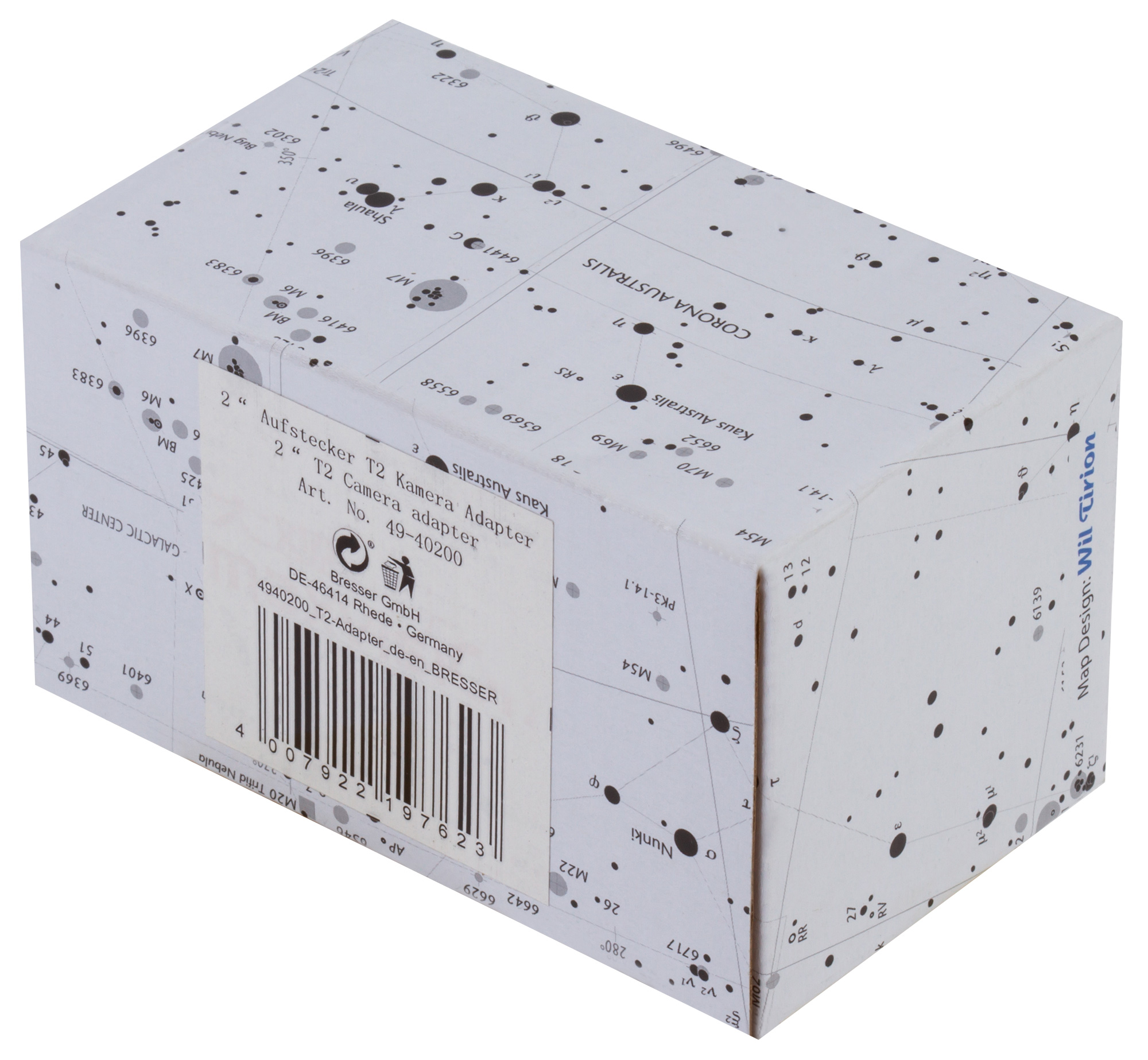 Адаптер для телескопа Bresser 1,25/2" с T2-резьбой предназначен для телескопов с фокусером 2 дюйма. Он позволяет устанавливать на них оптические аксессуары с посадочным диаметром 1,25 дюйма. Кроме того, адаптер имеет Т2-резьбу, т. е. его можно совместить с зеркальной камерой, чтобы заниматься астрофотографией. Обратите внимание: Т2-кольцо в комплект поставки не входит.