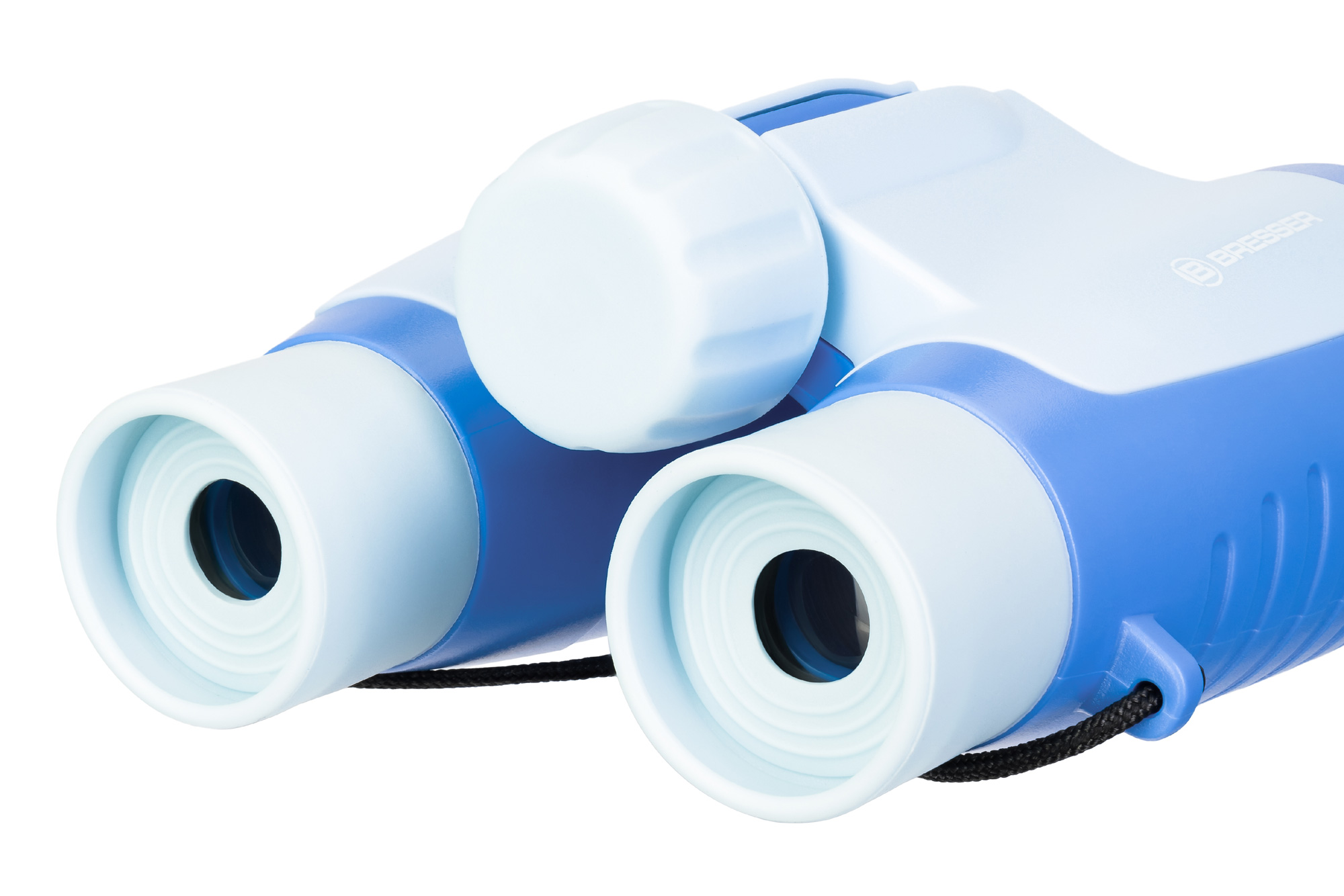 Благодаря компактным размерам и малому весу прибор не обременяет в дороге – ребенку будет нетрудно удерживать его на весу и обхватывать руками. Барабан фокусировки вынесен максимально близко к окулярам, чтобы им можно было управлять, не отрываясь от наблюдений. Наглазники специально выполнены из мягкой резины, чтобы исключить риск травмирования кожи при длительном соприкосновении. Если ребенок носит очки, наглазники для удобства можно сложить. Также здесь предусмотрена настройка межзрачкового расстояния, причем в пределах, комфортных для ребенка.