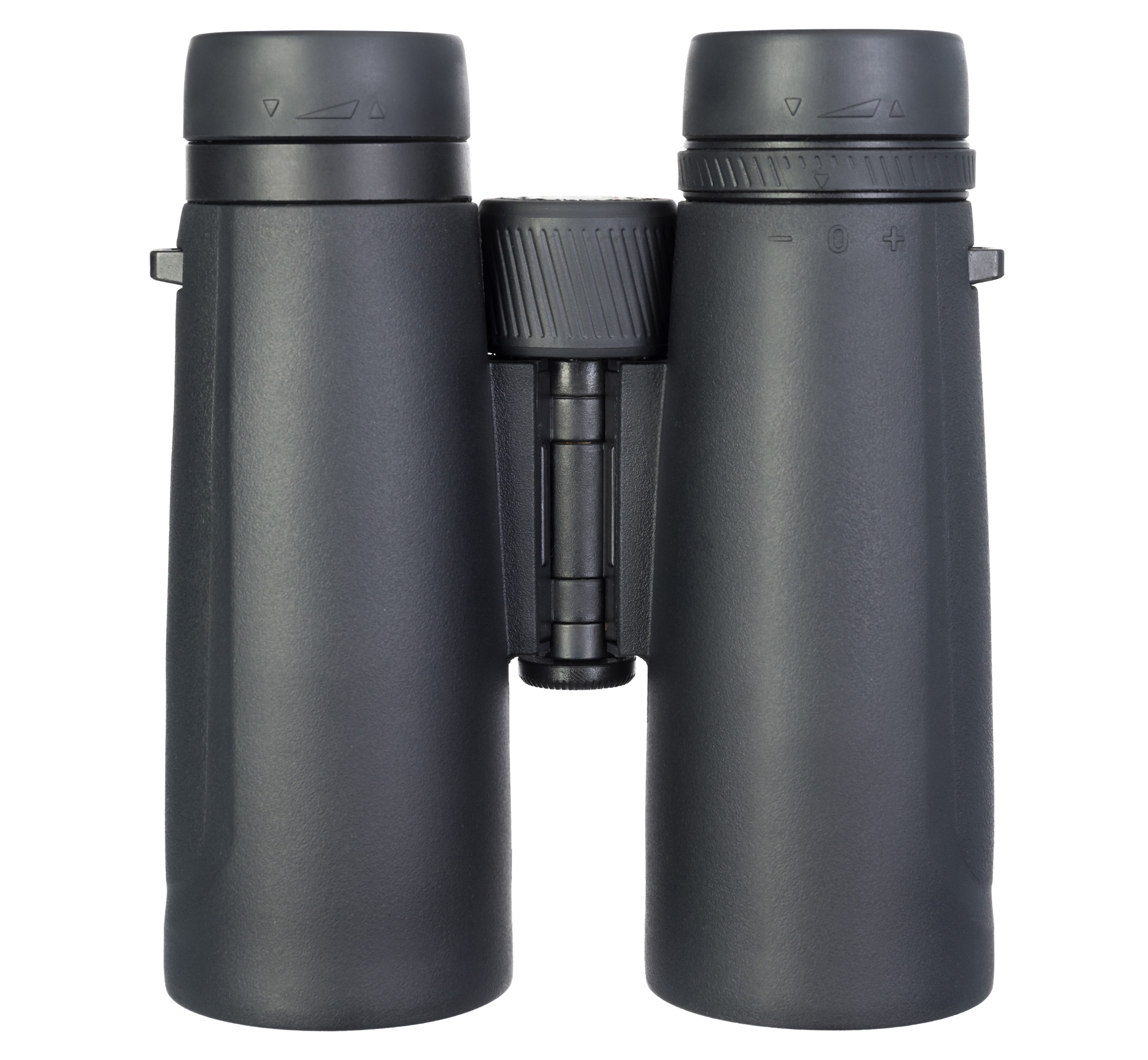 Удобно, что бинокль можно настроить под свои нужды. Резкость регулируется при помощи крупного центрального барабана, который приближен к окулярам, а значит, до него проще дотягиваться. На правом окуляре есть кольцо диоптрийной коррекции. Наглазники окуляров можно выдвигать и вдвигать для большего удобства наблюдений.