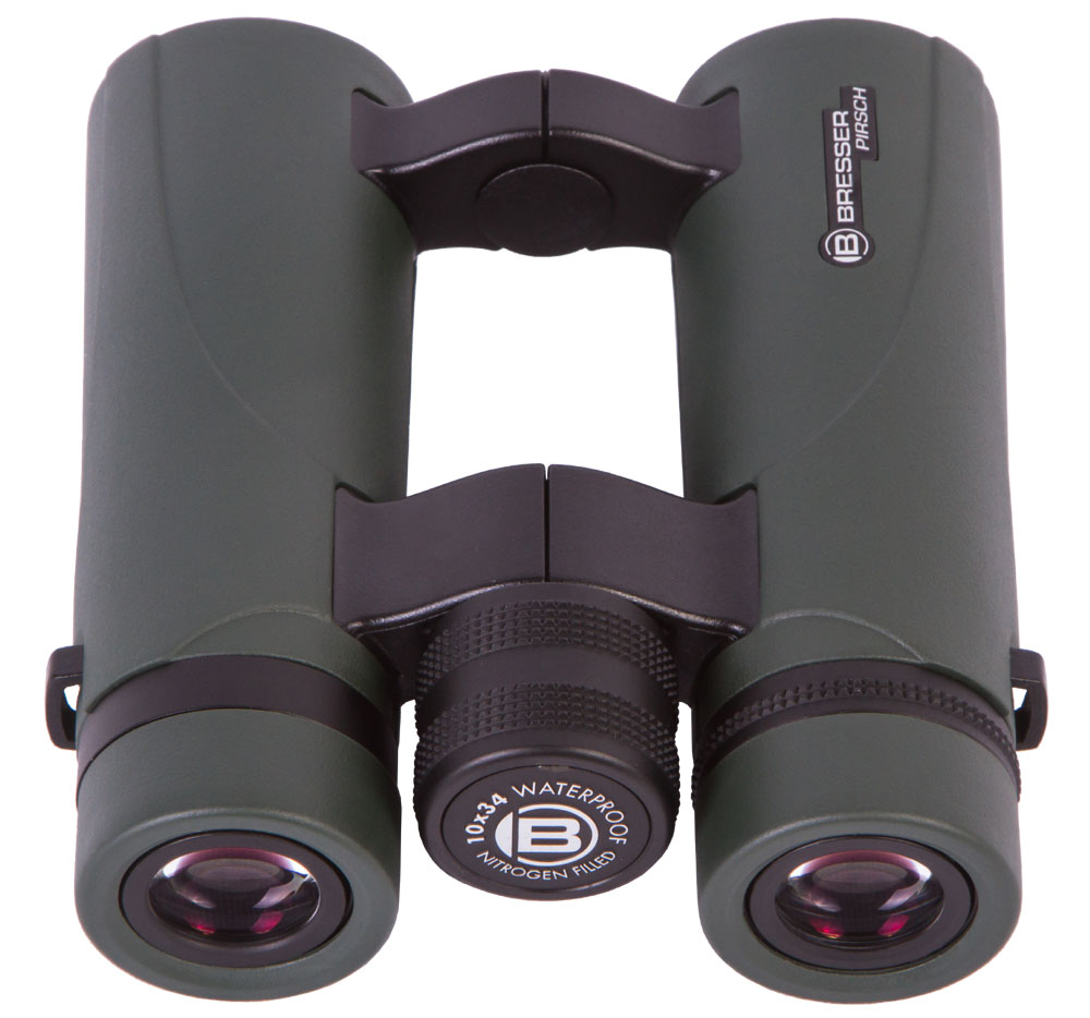 Корпус защищен от проникновения воды и покрыт резиной, улучшающей захват. Внутреннее пространство бинокля заполнено инертным газом, который не дает оптическим элементам запотевать и препятствует выпадению конденсата на линзах. Бинокль Bresser Pirsch 10x34 можно использовать в дождливые дни, не опасаясь за его работоспособность.