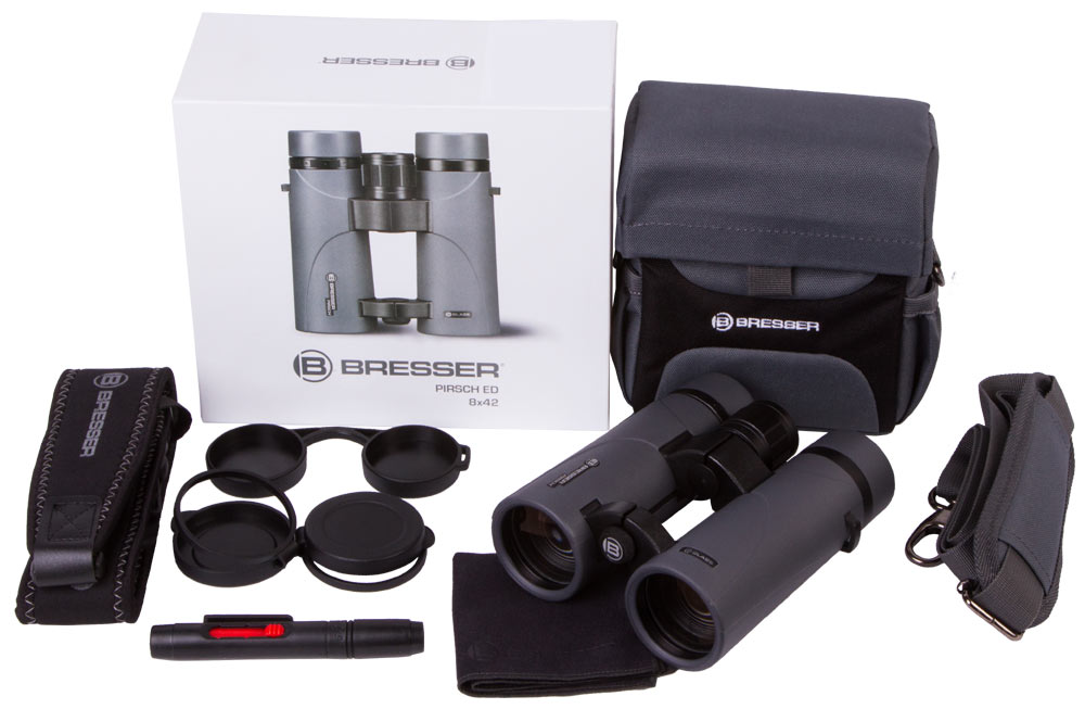 Bresser Pirsch ED 8x42 – бинокль премиум-класса с низкодисперсионной оптикой и водозащищенным корпусом. Его можно использовать при любой погоде, при наблюдениях на воде или вблизи нее. Этот бинокль станет отличным выбором для охотника, рыбака, натуралиста, орнитолога или требовательного пользователя, которому одинаково важны и качество картинки, и надежность конструкции.