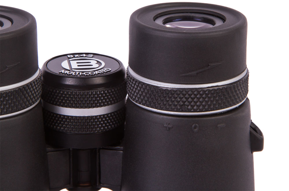 Оптика бинокля построена на базе roof-призм и линз с многослойным просветлением. Каждый оптический элемент сделан из стекла. Бинокль передает яркую, четкую и контрастную картинку по всему полю зрения. Отсекаются паразитные блики, а само изображение радует насыщенными цветами и высокой детализацией. Пластиковый корпус защищен резиновым покрытием – Bresser S-Series 8x42 не выскользнет из рук даже в самых сложных условиях наблюдений. Кроме того, покрытие отталкивает капли воды, пыль и грязь. На его поверхности не остаются отпечатки пальцев и пятна.