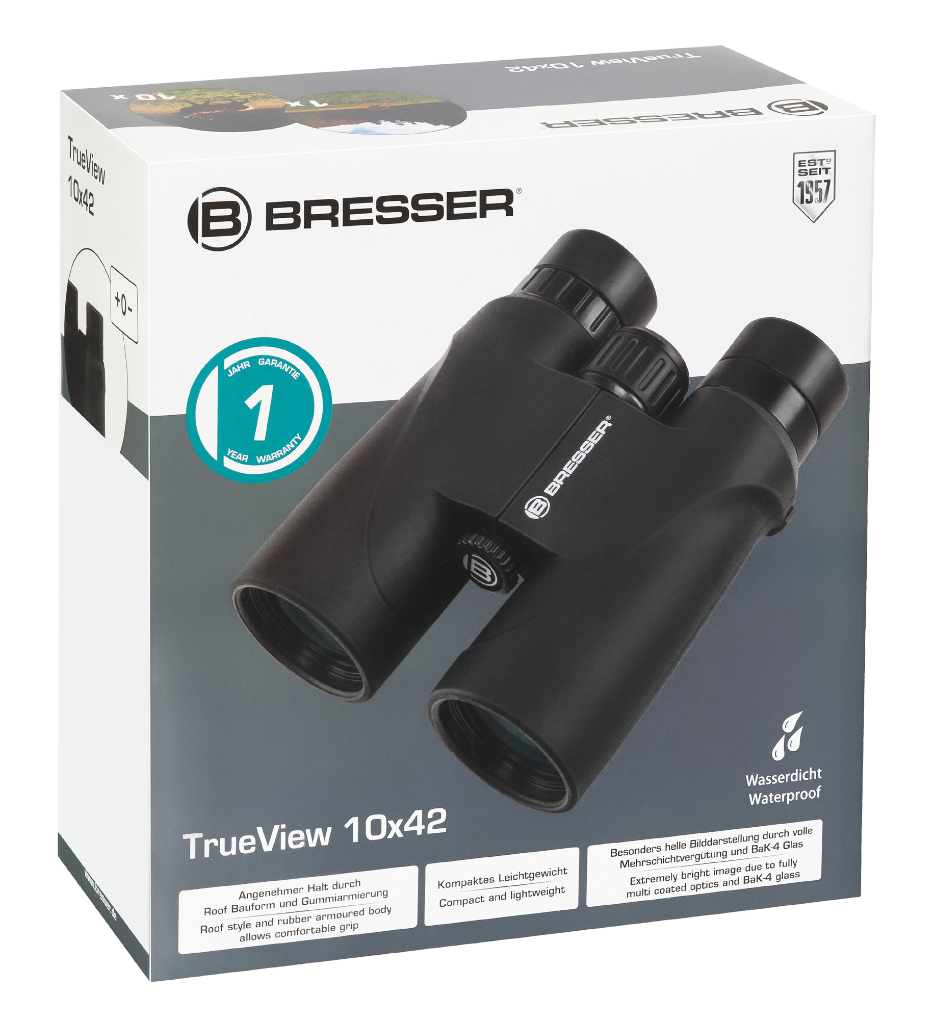 Бинокль Bresser TrueView 10x42 WP будет предпочтительнее аналогичных биноклей с маркой стекла Bk7. Незначительные хроматические абберации, как и у всех биноклей с Roof призмой.