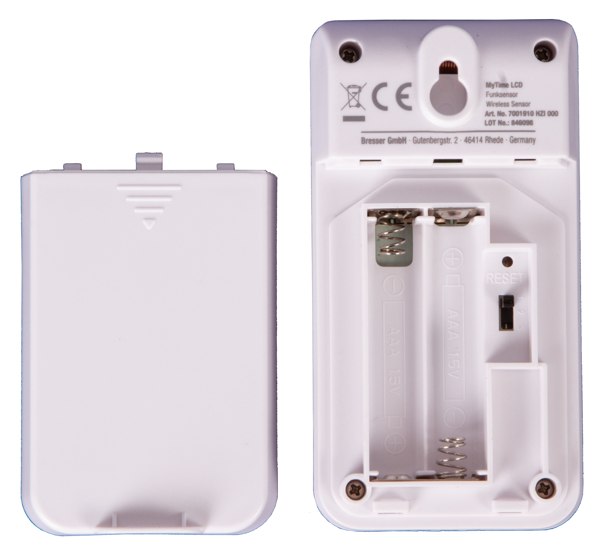 Прибор можно ставить на ровную горизонтальную поверхность или вешать на стену. Для питания используются батарейки (нет в комплекте).