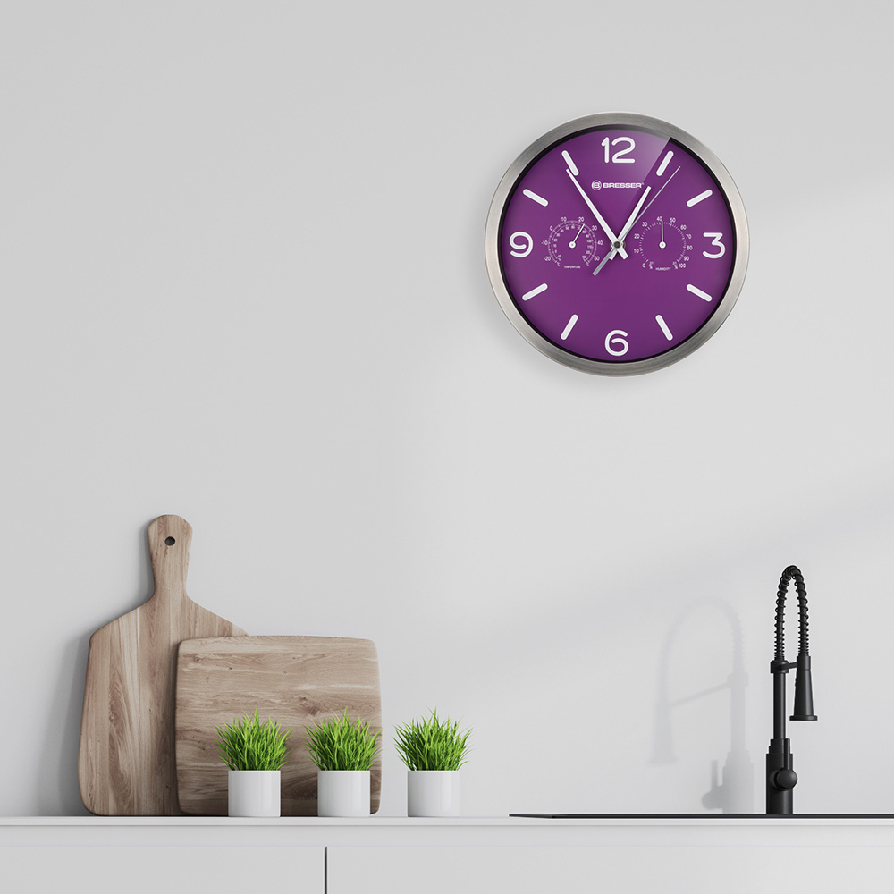 Часы настенные Bresser MyTime ND DCF Thermo/Hygro, 25 см, фиолетовые
