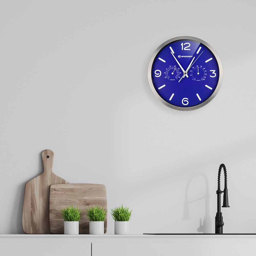 Часы настенные Bresser MyTime ND DCF Thermo/Hygro, 25 см, синие