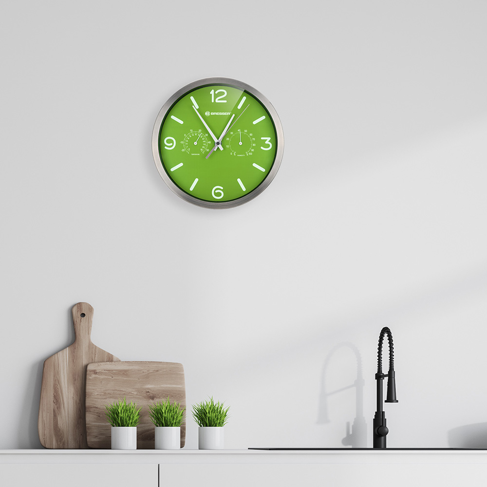 Часы настенные Bresser MyTime ND DCF Thermo/Hygro, 25 см, зеленые