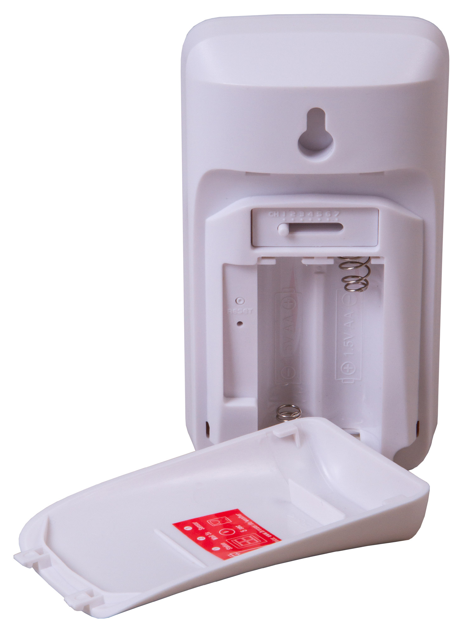Для работы прибора требуются батарейки (нет в комплекте). Датчик можно закрепить на стене или поставить на подоконник.