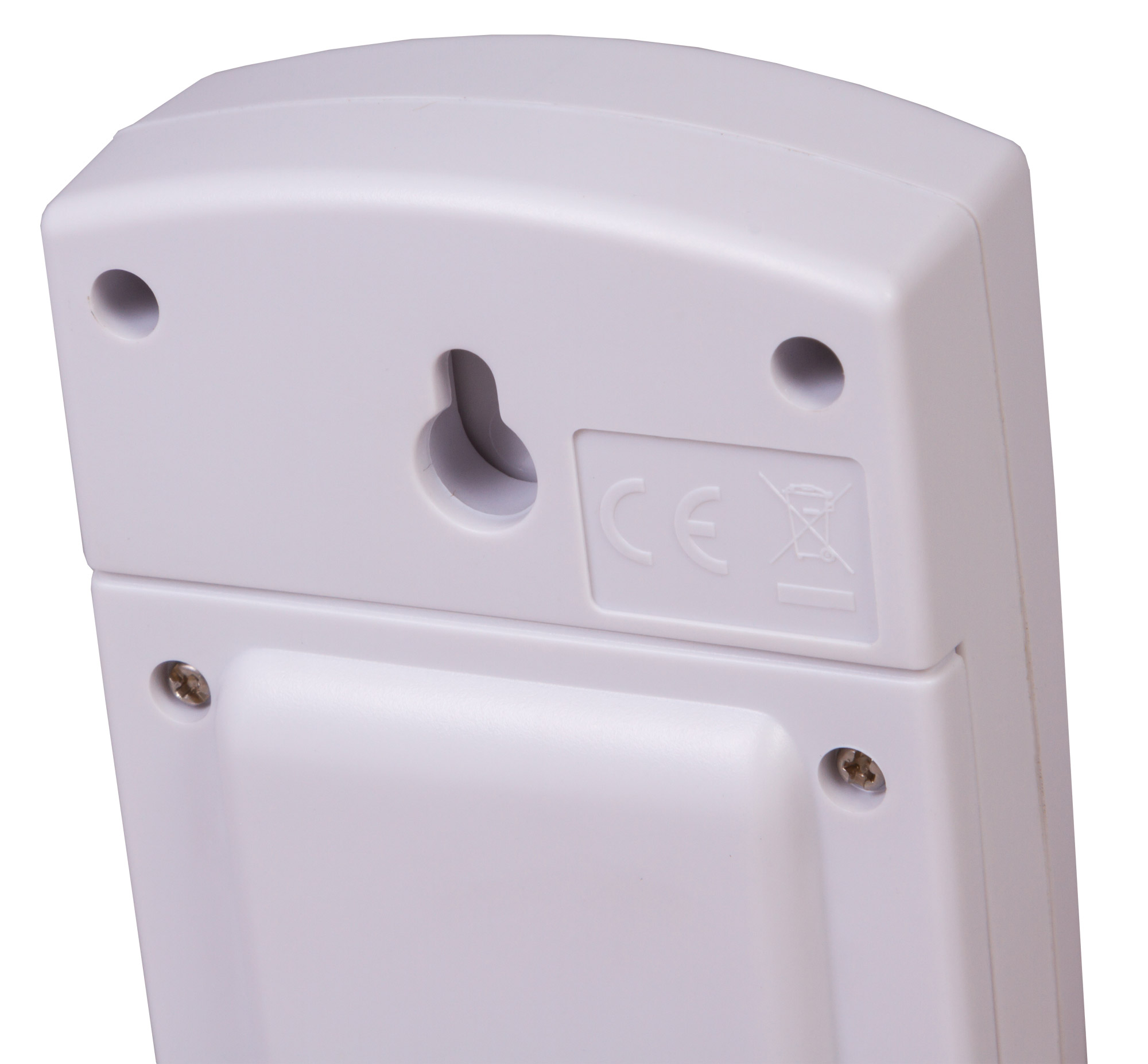 Датчик снабжен встроенным ЖК-экраном, а на задней крышке есть переключатель активного радиоканала. Датчик можно ставить на стол, подоконник или полку или же закреплять на стене.