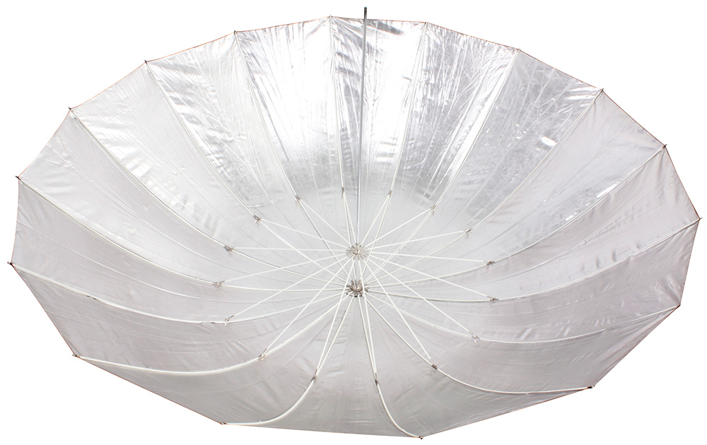 Фотозонт Bresser SM-09 Jumbo большого диаметра пригодится в работе профессионального фотографа. Этот зонт на отражение выполнен снаружи из черной ткани, а внутри – из серебристой фольги, которая позволяет выстраивать более холодный и жесткий свет. Такое освещение усиливает контраст и делает изображение более насыщенным. Диаметр купола составляет 180 см.