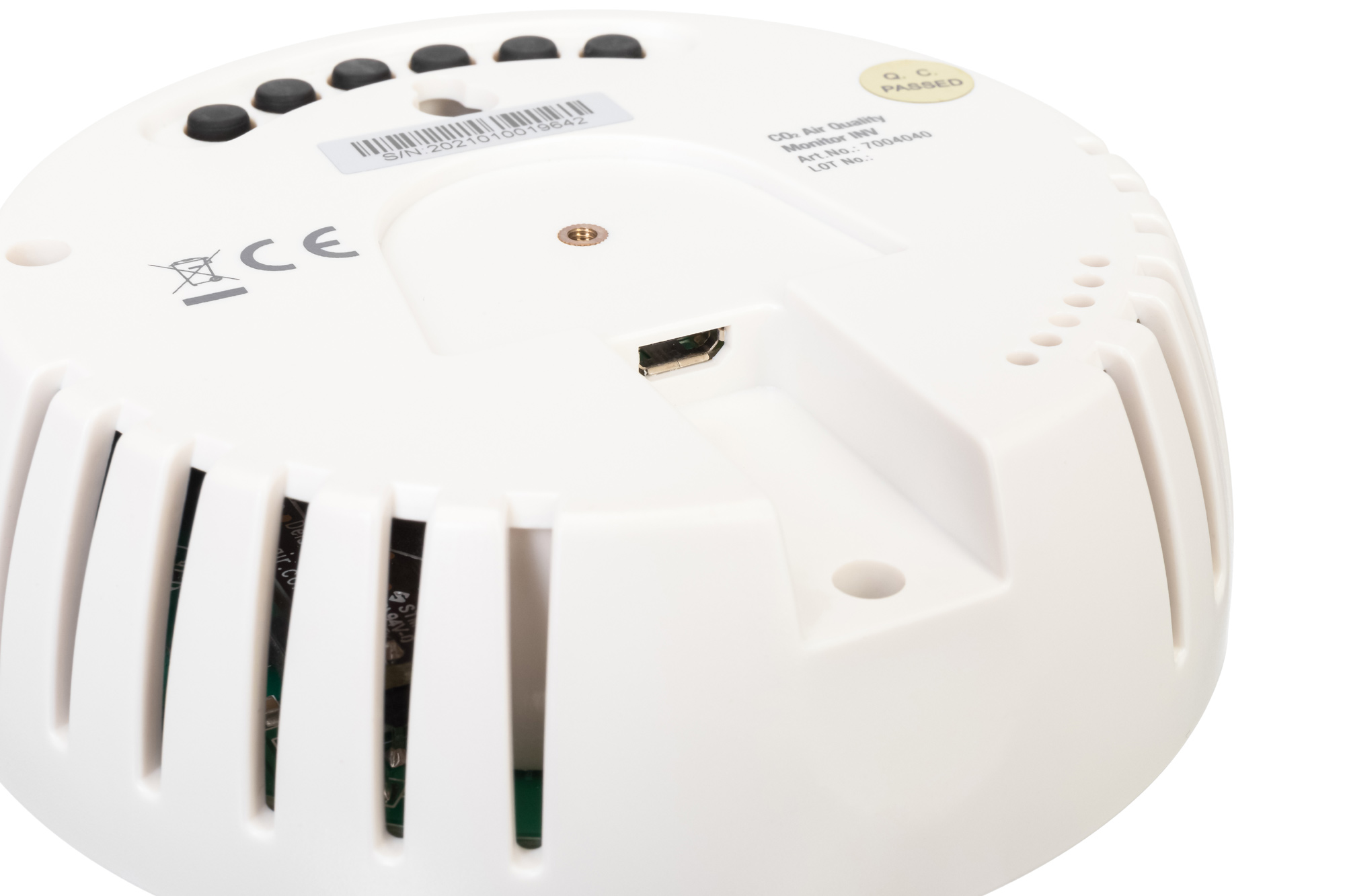 Гигрометр Bresser Air Quality INV дополнен термометром и датчиком углекислого газа, что делает его полезным многофункциональным прибором для наблюдения за микроклиматом дома или офиса. Также он умеет предупреждать звуковым сигналом о слишком высоком значении CO2 и может подключаться к компьютеру с Windows.