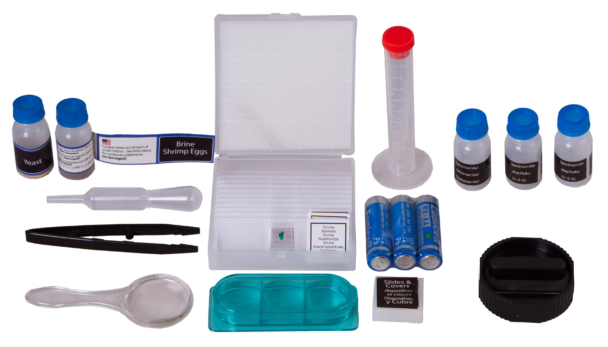 Комплектный набор для экспериментов – возможность приступить к исследованиям незамедлительно. Аксессуары позволяют создавать собственные образцы для изучения, наблюдать за артемией, проводить несложные научные опыты.