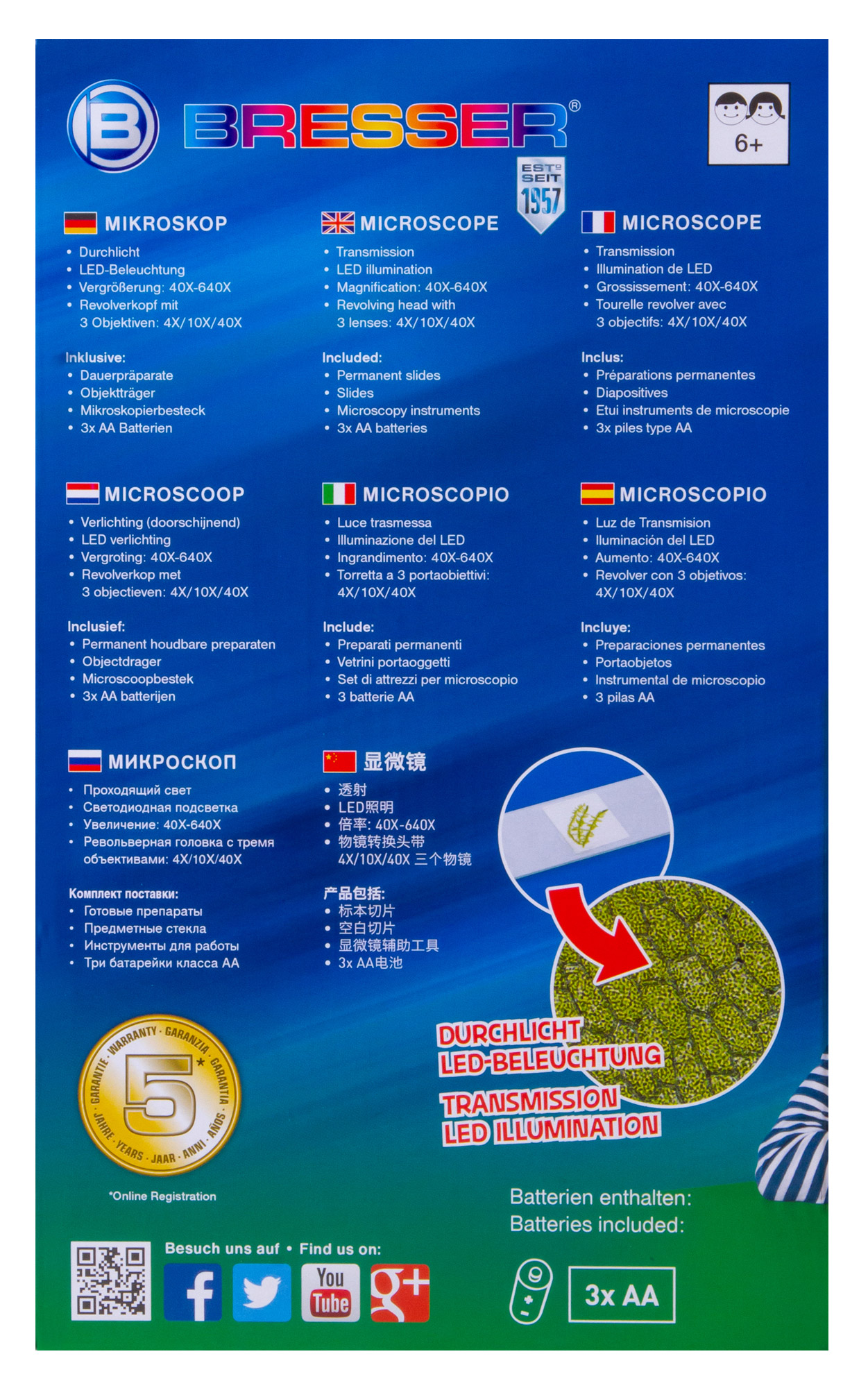 Микроскоп Bresser Junior 40–640x – это оптический прибор, созданный специально для детей. Он небольшой, легкий и простой в управлении. А еще – он интересно и ярко выглядит. Увлеченный наукой ребенок по достоинству оценит возможности микроскопа, ведь с его помощью можно не только изучать готовые микропрепараты, но и проводить увлекательные опыты. Комплектные аксессуары позволяют даже вырастить в инкубаторе небольшую колонию морских рачков (артемии).