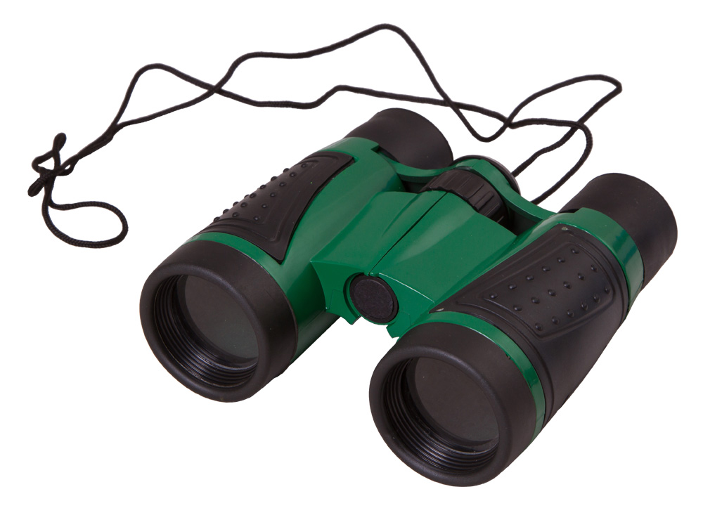 Это компактный бинокль с четырехкратным увеличением. Подходит для наблюдения за удаленными объектами в дневное время. Вся оптика и корпус изготовлены из пластика – в случае повреждения не будет стеклянных осколков, которые могли бы поранить ребенка. Как и у «взрослого» бинокля, есть центральная фокусировка и возможность регулировки межзрачкового расстояния.