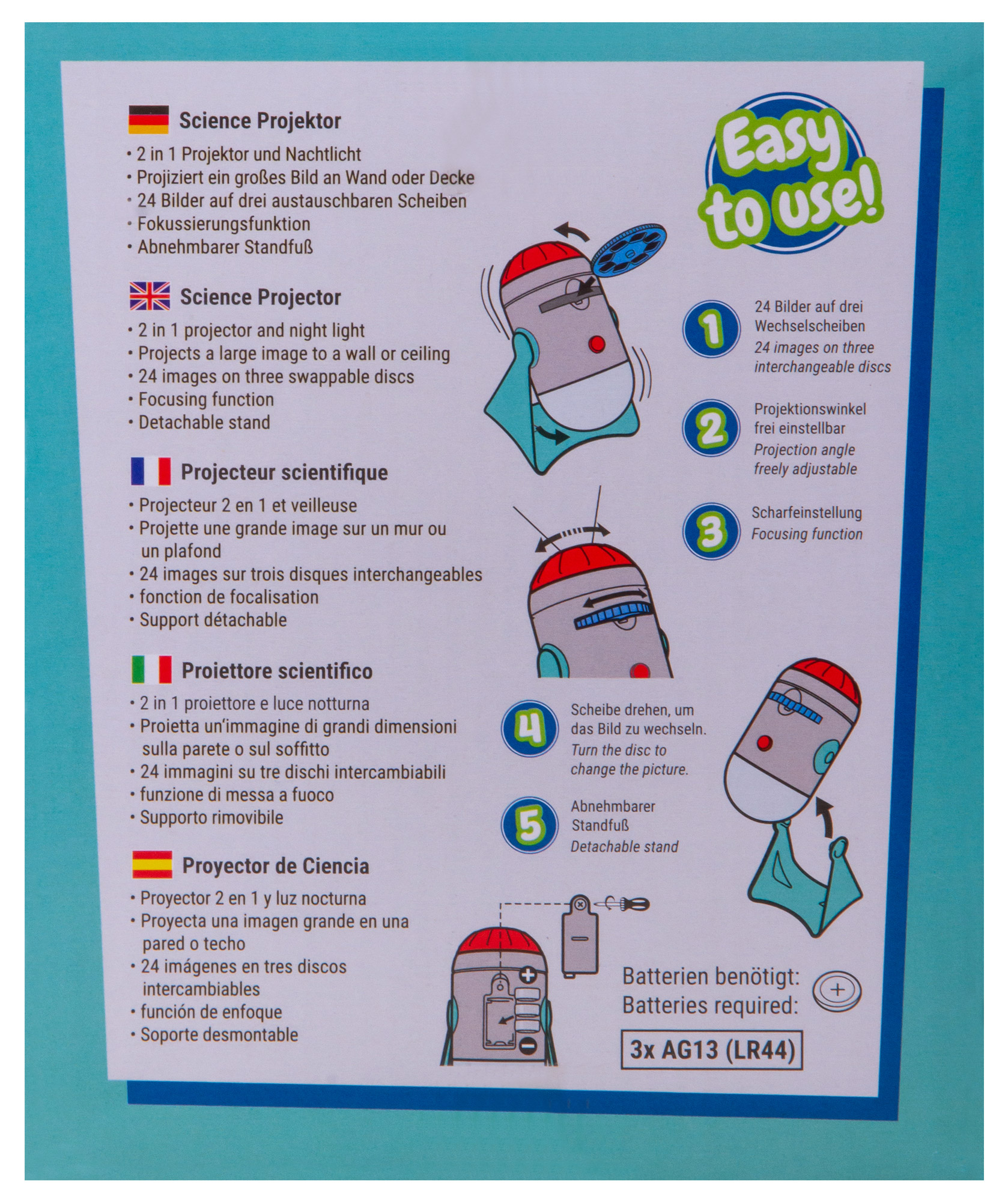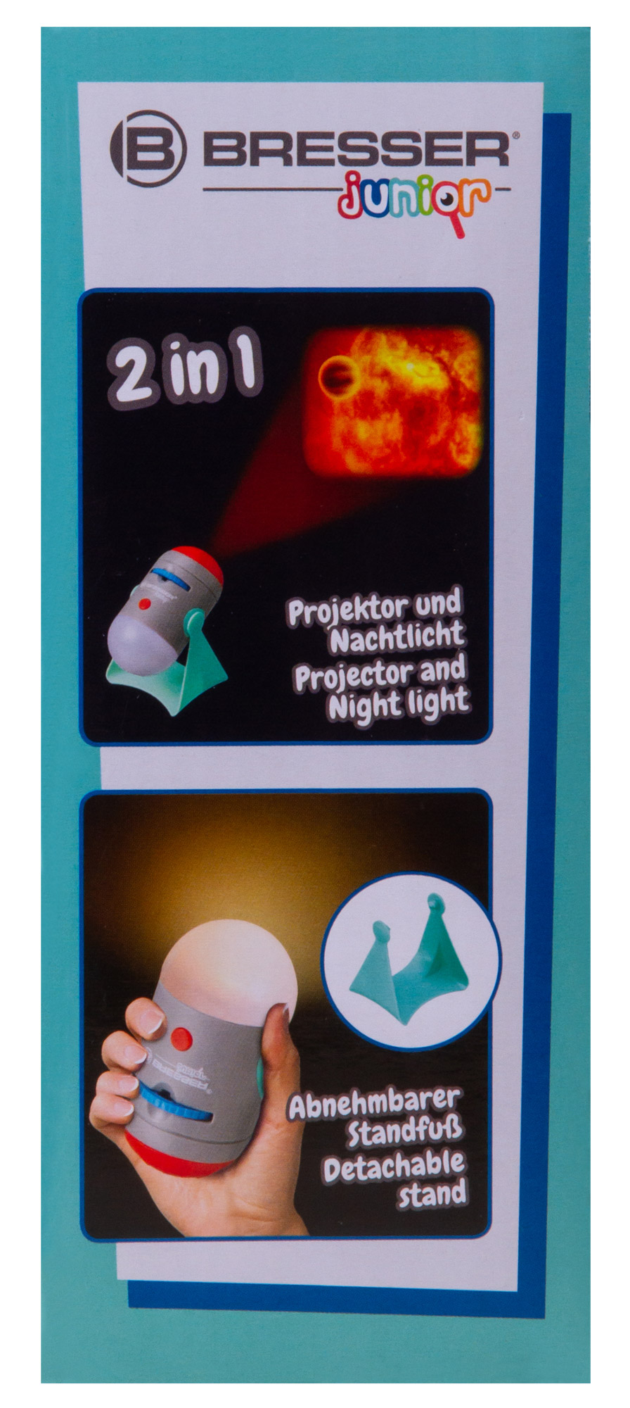 Проектор-ночник Bresser Junior поможет ребенку и в учебе, и в отдыхе. Это набор «2 в 1»: проектор для изучения обучающих слайдов и лампа-ночник для создания уютной атмосферы в комнате. Прибором легко пользоваться, помощь взрослых необязательна.