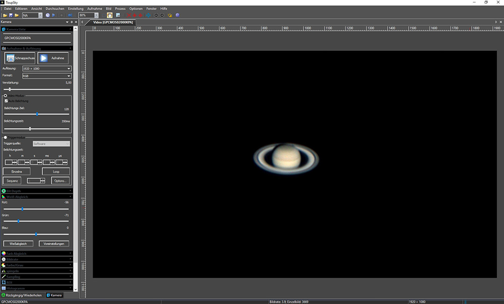 В Bresser Full HD используется высокочувствительный цветной CMOS-сенсор с обратной засветкой. Он способен уловить свет даже тусклых звезд и других объектов дальнего космоса. Его квантовая эффективность (световая чувствительность) достигает 77% при длине волны в 533 нм (видимый свет). В комплект поставки включена программа ToupSky. С ее помощью можно редактировать фотоснимки и создавать видеоролики.