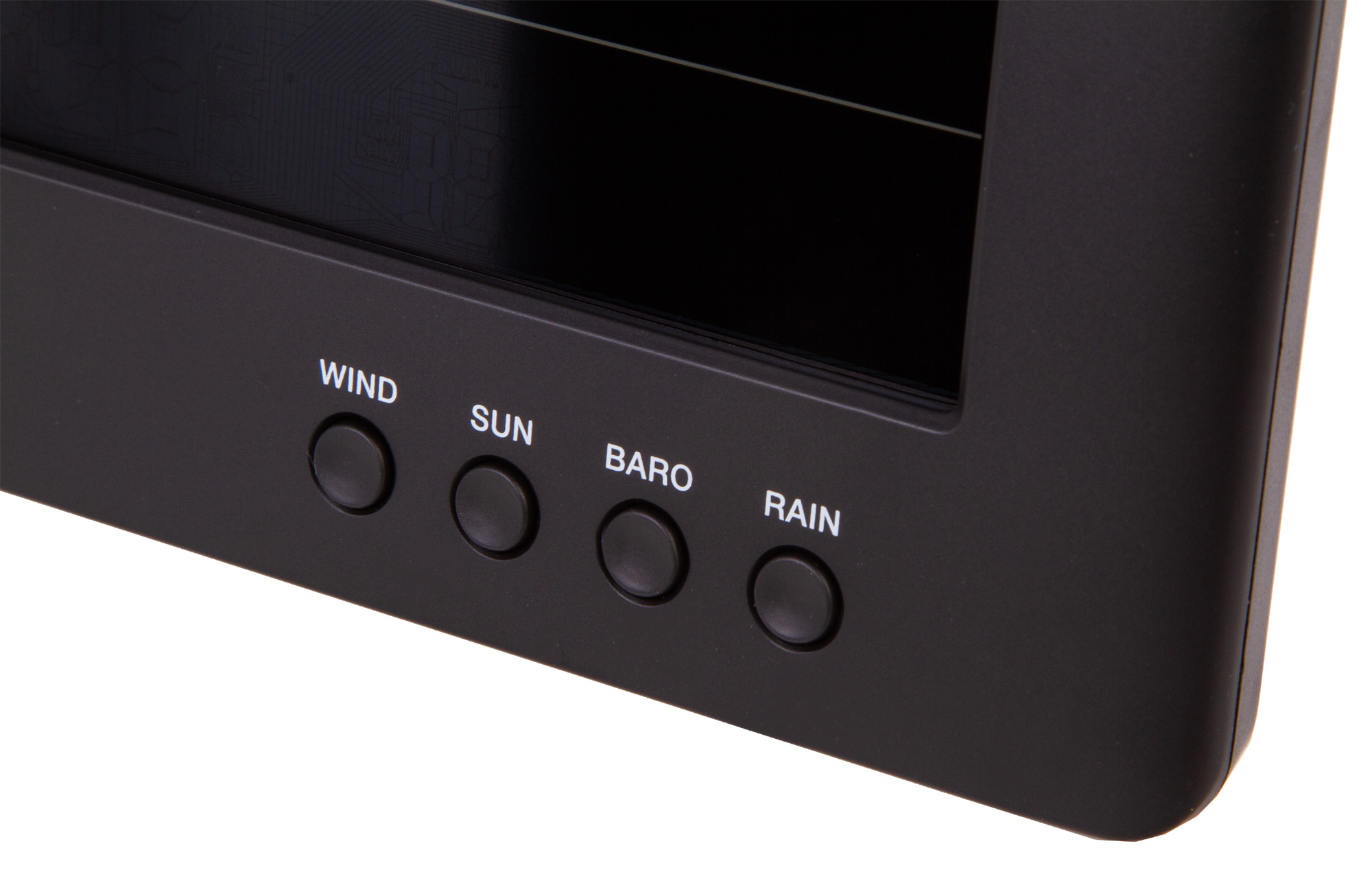 Цветной экран метеостанции вмещает всю погодную информацию. И это неудивительно, так как его диагональ составляет 8,3 дюйма (21 см). Символы видны четко и ясно даже с большого расстояния благодаря высокой контрастности и абсолютно черному цвету фона. Экран также имеет подсветку, яркость которой можно регулировать.