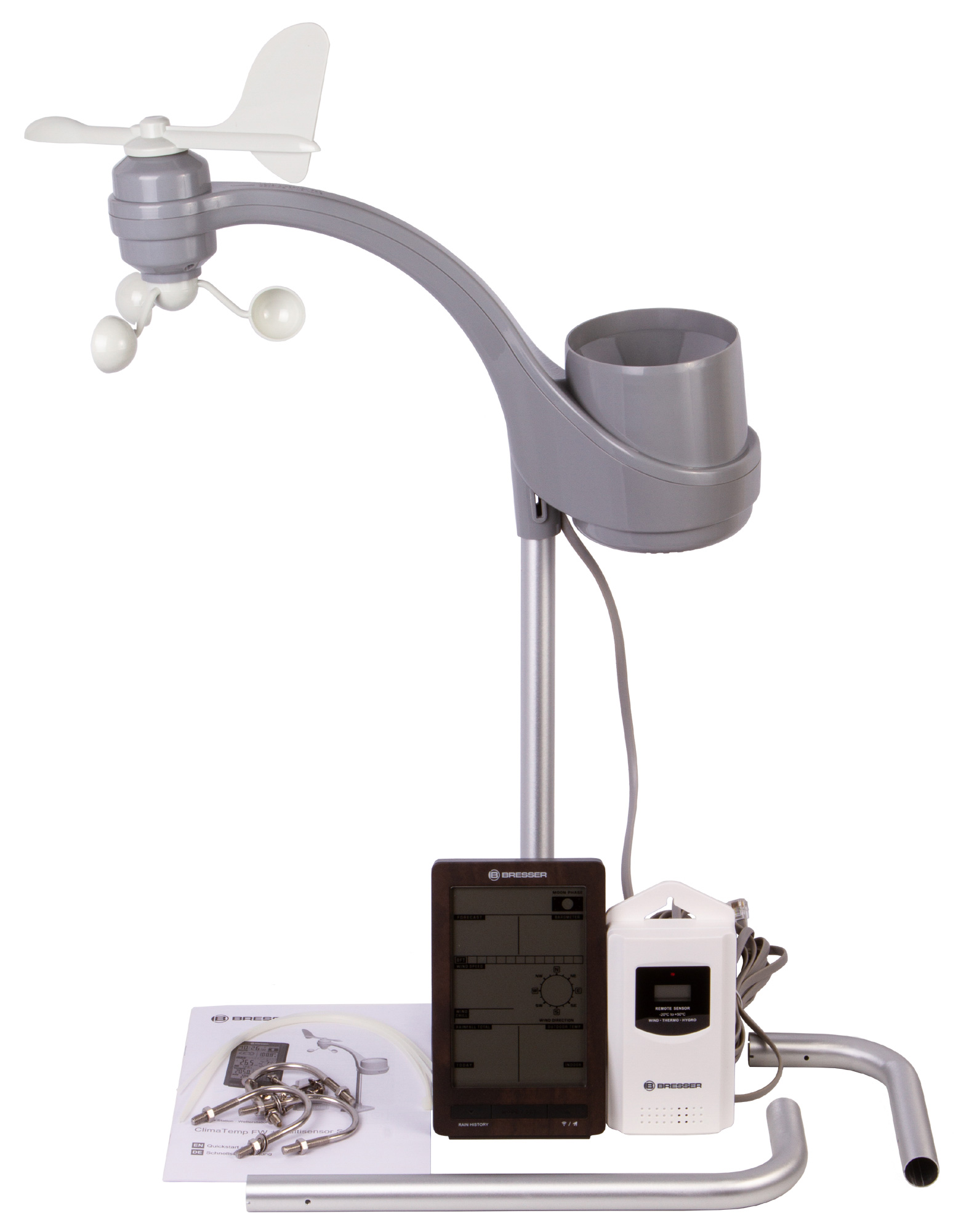 Многофункциональный метеоцентр в элегантном корпусеШирокий спектр возможностей: термогигрометр, барометр, дождемер, ветромер, часы с будильникомСоставляет прогноз погоды на ближайшие 24 часаВ комплект поставки включены два метеодатчикаПитание от стандартных батареек Комплект поставки:  Метеостанция (основной модуль)Датчик дождя и ветраТермогигродатчикСоединительный кабельМонтажный наборИнструкция по эксплуатации и гарантийный талон Технические характеристики