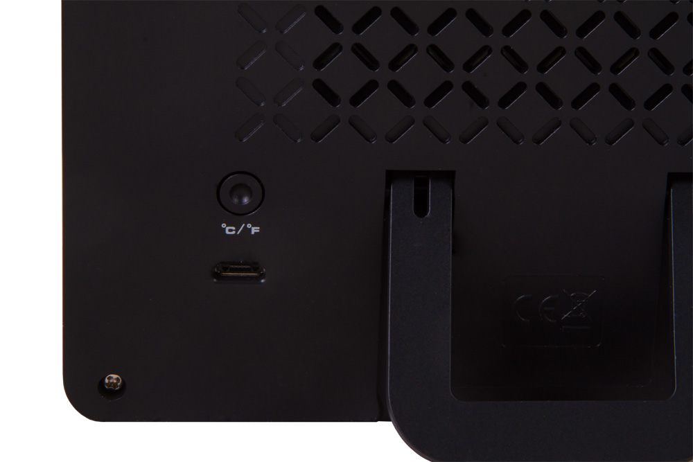 Основной модуль оценивает температуру и влажность воздуха внутри помещения. Он же работает и как часы с будильником. Срабатывание сигнала можно установить по дням недели или на один раз. Кнопки управления расположены на внешней части корпуса. Для питания основного модуля используется сеть переменного тока (адаптер включен в комплект поставки).