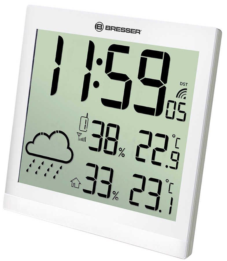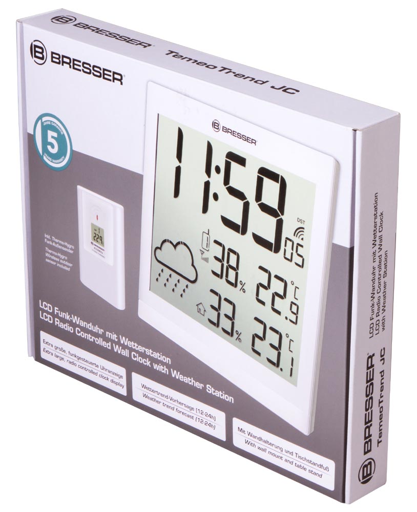 Все товары Bresser » Метеостанции, часы, датчики » Метеостанции » Метеостанция (настенные часы) Bresser TemeoTrend JC LCD с радиоуправлением, белая