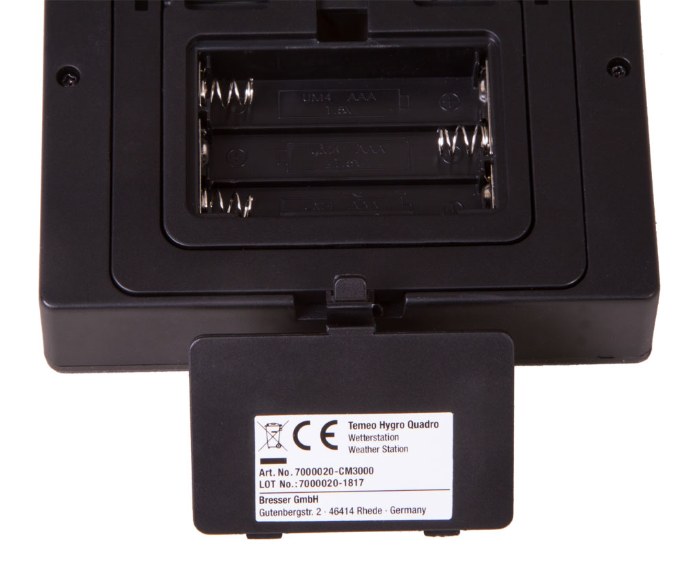 Bresser Temeo Hygro Quadro – это метеостанция с тремя наружными датчиками. Благодаря этому проводить измерения можно сразу в нескольких местах одновременно. На цифровом экране отображается сразу вся информация – и с основного модуля, и с дополнительных датчиков.