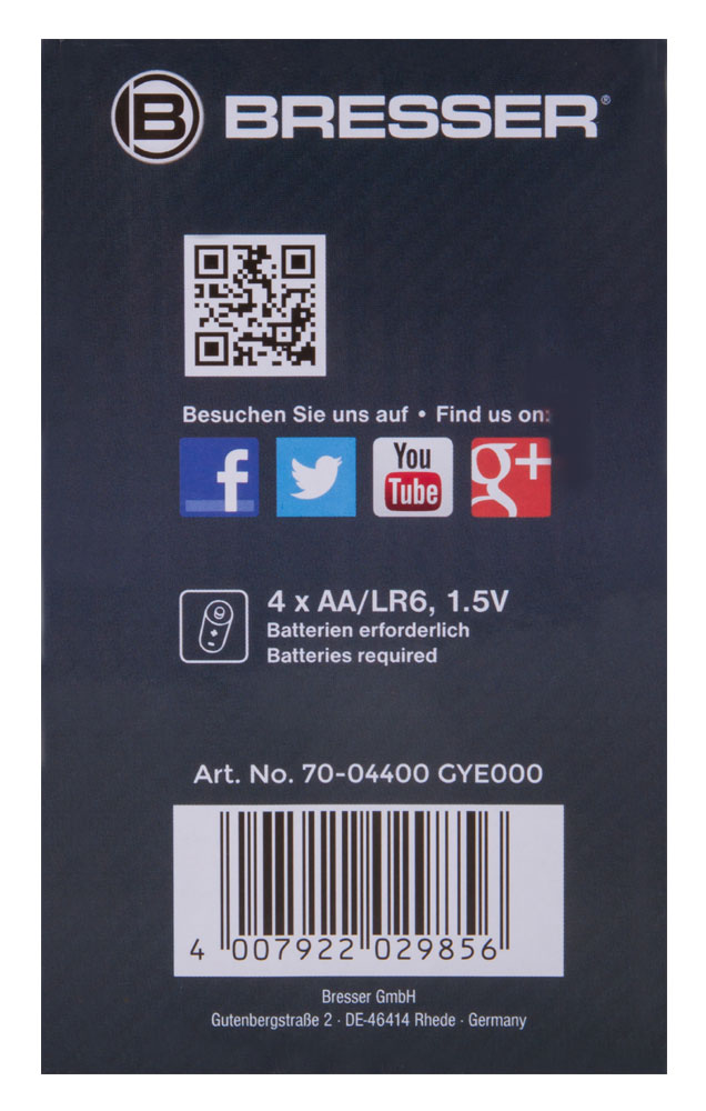 батарейки типа АА, 1,5 В – 4 шт. (нет в комплекте)