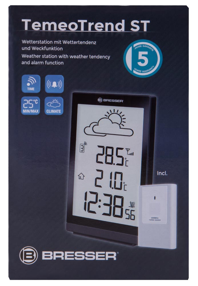 Все товары Bresser » Метеостанции, часы, датчики » Метеостанции » Метеостанция Bresser TemeoTrend ST с радиоуправлением, черная