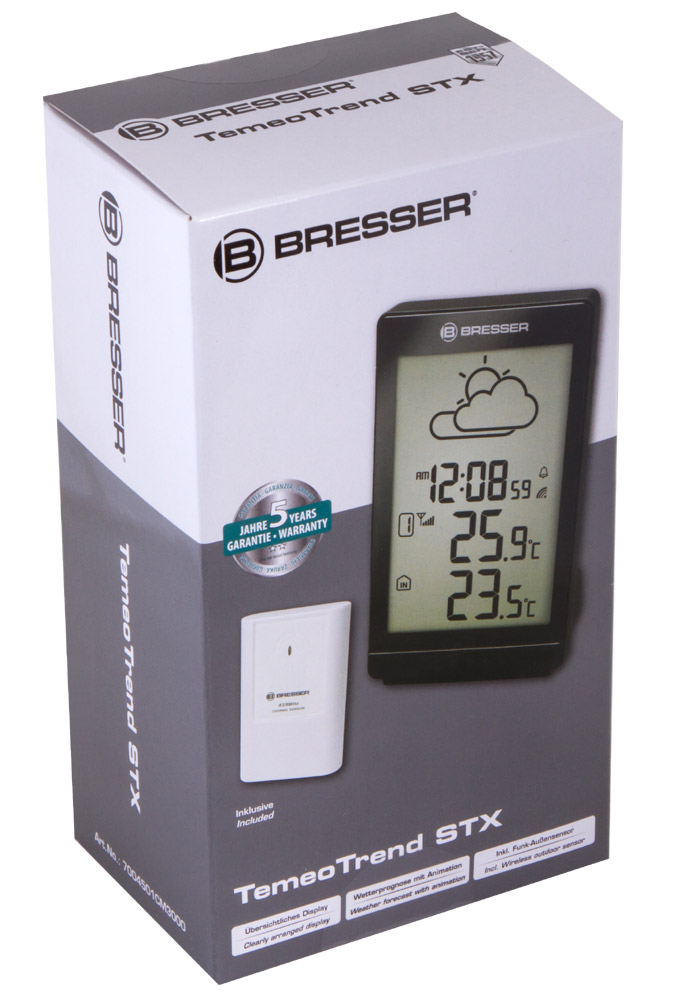 Все товары Bresser » Метеостанции, часы, датчики » Метеостанции » Метеостанция Bresser TemeoTrend STX с радиоуправлением, черная
