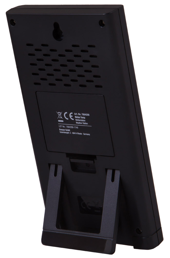 Метеостанция Bresser Temp – прибор, который легко заменит собой часы и термометр. Он представляет собой основной модуль с цифровым экраном и наружный датчик, который можно установить на расстоянии до 30 метров от метеостанции. Датчик измеряет температуру, передает информацию по радиоканалу, а собранные данные отображаются на метеостанции. На их основе Bresser Temp умеет составлять прогноз погоды на период до 12 часов.