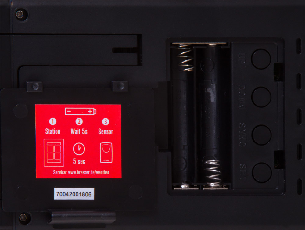 батарейки типа ААА, 1,5 В (нет в комплекте): метеостанция – 2 шт., наружный датчик – 2 шт.