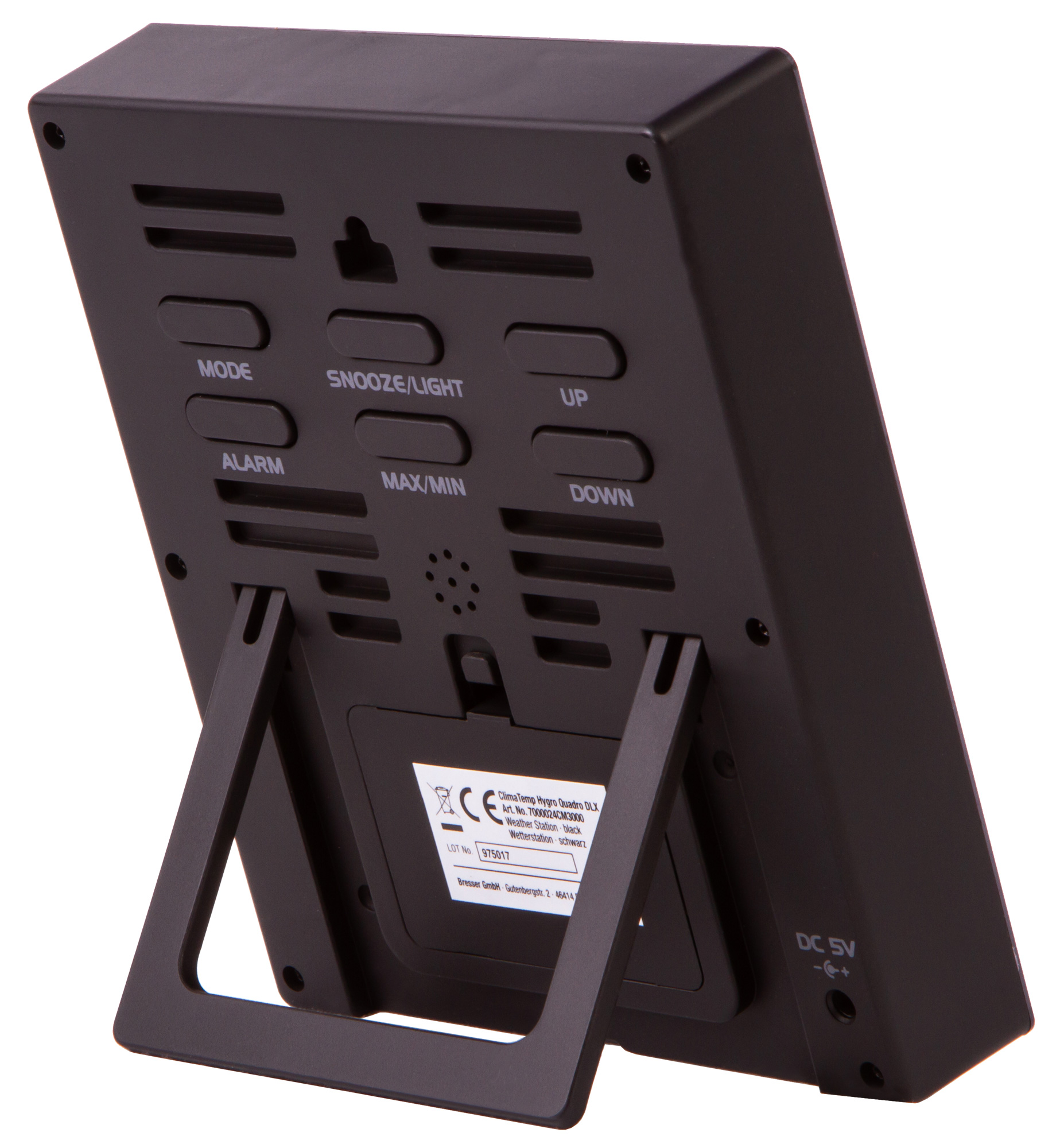 Bresser ClimaTemp Hygro Quadro – метеостанция с тремя беспроводными датчиками. Она позволяет проводить измерения температуры и влажности воздуха, показывает время и дату. Датчики можно разместить в разных комнатах квартиры или на улице, и таким образом получить максимально полную картину о микроклимате дома и погоде за окном.