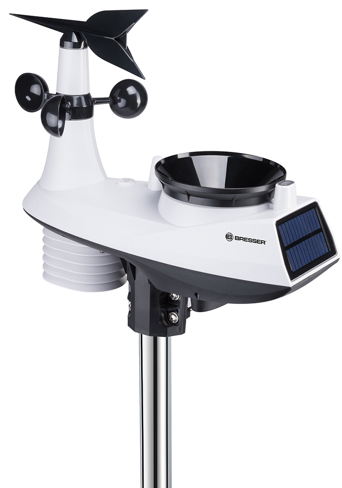Профессиональная метеостанция Bresser Wi-Fi позволяет быть в курсе всех изменений погоды за окном. В комплекте с ней идет многофункциональный датчик «6 в 1», который измеряет температуру, влажность воздуха, давление, количество осадков, скорость ветра, а также определяет направление ветра и УФ-индекс (уровень ультрафиолетового излучения).