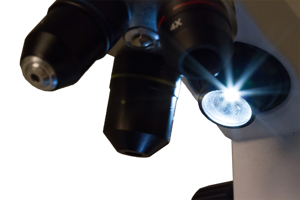 Микроскоп снабжен двумя светодиодными осветителями: