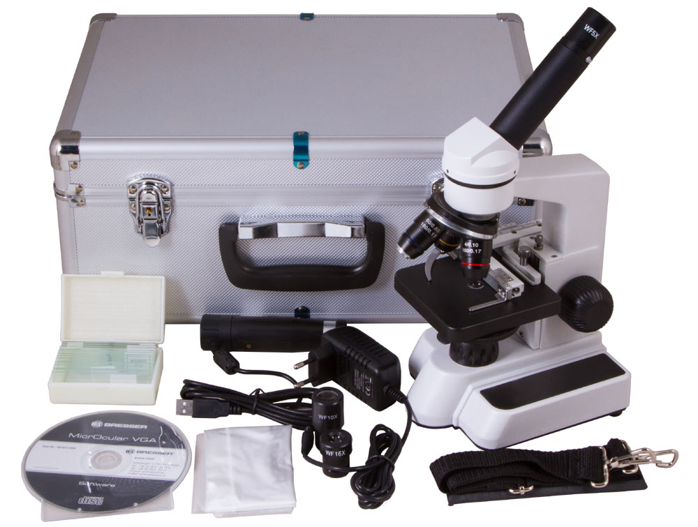 Bresser Erudit MO 20–1536x – микроскоп с богатой комплектацией. Он подходит для изучения основ биологии, проведения несложных научных опытов, выполнения школьных лабораторных работ. В него можно рассматривать любые прозрачные образцы – тонкие срезы растений или готовые микропрепараты. Оптика дает увеличение от 20 до 1536 крат, в комплекте есть цифровая камера для фотографирования и видеозаписи и базовый набор для опытов.