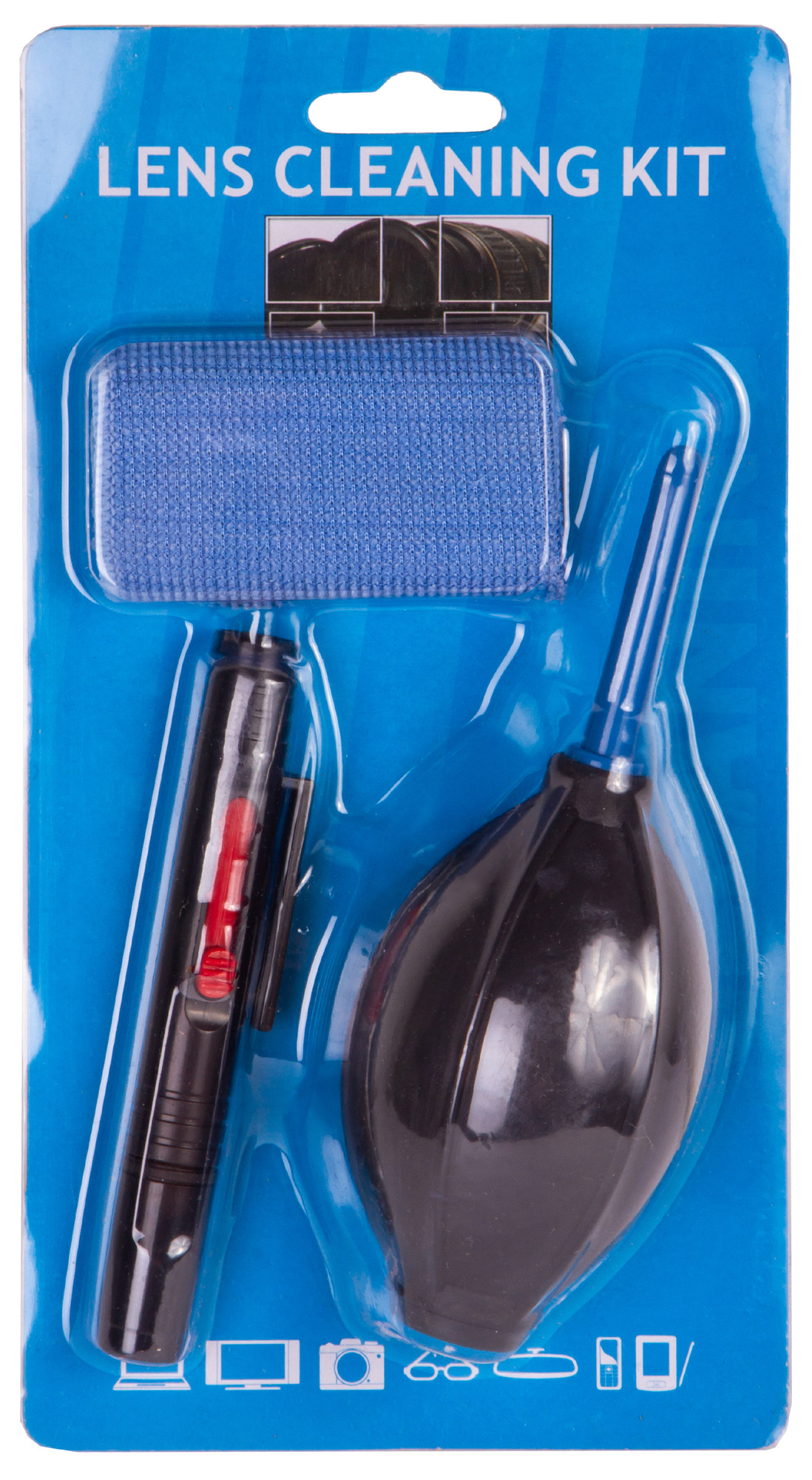 В комплекте: воздушная груша, чистящий карандаш, салфетка из микрофибры