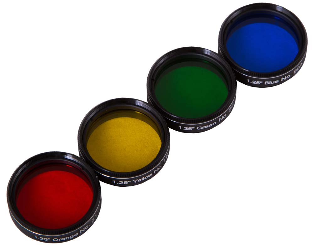 Набор Explore Scientific №2 состоит из четырех светофильтров, созданных специально для изучения Луны и планет Солнечной системы. Каждый фильтр сделан из высококачественного оптического стекла, защищен светоотражающим покрытием и заметно улучшает контрастность изображения. Фильтры помогают наблюдать больше деталей, четче выделяют контуры и подчеркивают разницу между темными и светлыми оттенками картинки.