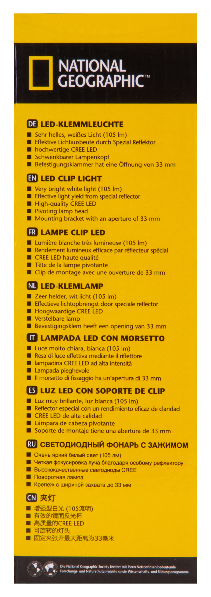 Фонарь-светильник Bresser National Geographic – это несколько приборов в одном. Он может быть удобным фонарем, который осветит путь в темном помещении. Его также можно использовать в качестве настольной лампы для чтения или рукоделия. Пригодится он и в мастерской – для освещения рабочего стола. Основная особенность этого светильника – необычная ручка-крепление, которая позволяет ставить его вертикально, закреплять на полке или дверце, просто держать в руках. Благодаря этому свет можно добавить практически в любое помещение.