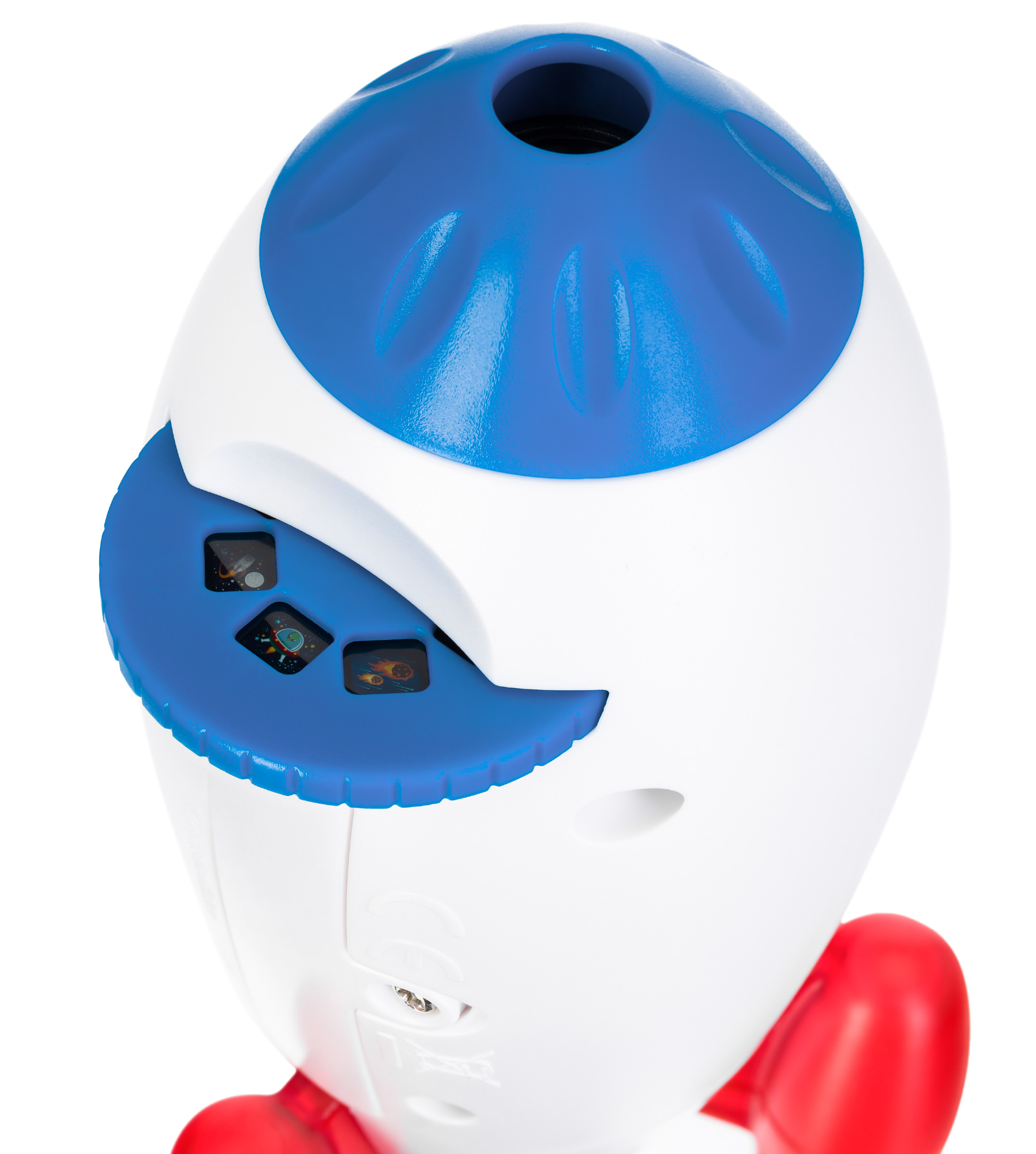 Bresser Space Rocket Slide – это набор «2 в 1», который станет прекрасным подарком ребенку и порадует всю семью. Как проектор он позволяет выводить на любую ровную поверхность 24 забавных изображения космоса – в комплекте 3 тематических слайда, по 8 изображений на каждом. Также прибор может превратиться в лампу-ночник с мягким светом. Ее можно использовать стационарно или, сняв с подставки, осветить себе путь – например, в темном коридоре квартиры.