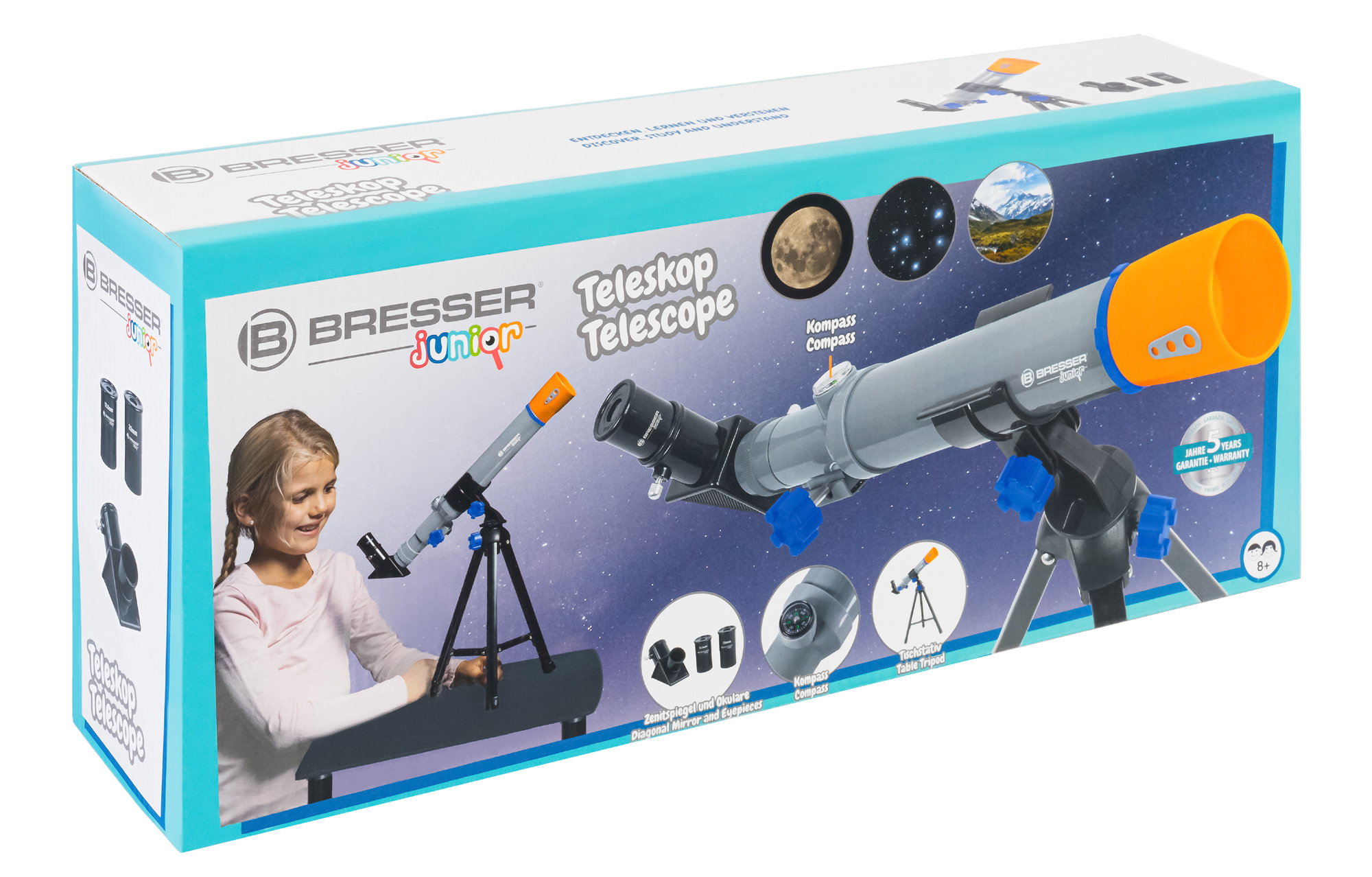 Детский телескоп Bresser Junior 40/400 AZ создан специально для самых юных пользователей. Его отличительные особенности – элементарное управление, интересный дизайн корпуса, небольшие размеры и вес. В телескоп можно наблюдать Луну или наземные объекты. Фактически он представляет собой два прибора в одном: телескоп и зрительную трубу. В комплекте есть все необходимое, поэтому приобретать что-либо дополнительно не нужно.