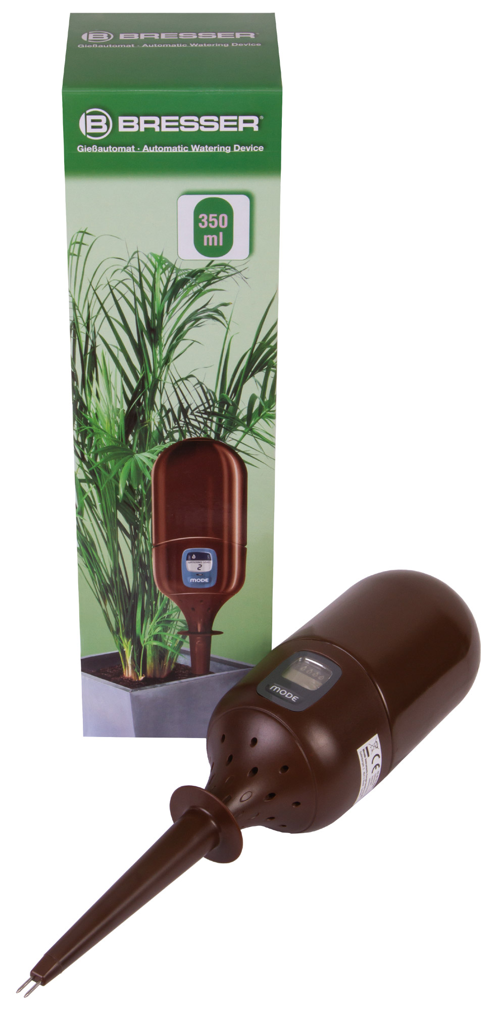 Устройство автоматического полива растений Bresser предназначено для контроля уровня влажности почвы у горшочных растений. В нижней части расположен сенсор, который постоянно информирует о состоянии растения, в верхней – резервуар для воды объемом 350 мл. Вы выбираете режим полива, все остальное прибор берет на себя. Если вода в резервуаре подойдет к концу, устройство своевременно оповестит вас об этом.