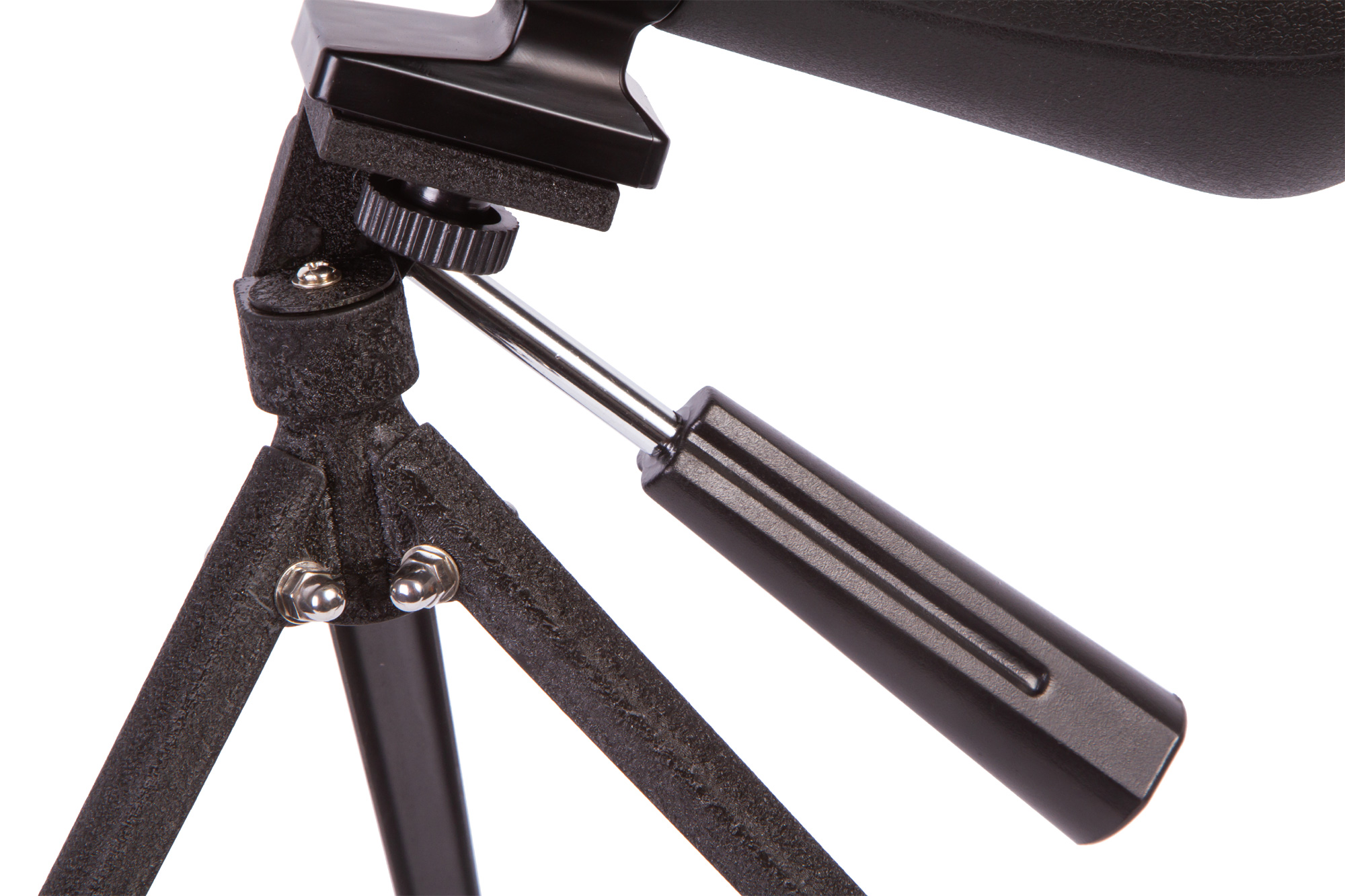 Окуляр трубы установлен наклонно, поэтому в нее удобно изучать объекты, расположенные высоко. Оптические элементы размещены по Porro-схеме, сделаны из стекла BaK-4 и полностью просветлены. Благодаря этому зрительная труба передает четкую и ясную картинку даже в сумерках. Так как стартовое увеличение относительно небольшое (15 крат), зрительную трубу необязательно устанавливать на штатив, достаточно обеспечить ей надежный упор – подойдет ветка дерева или перила террасы. Тем не менее, в комплект поставки включен небольшой настольный штатив.