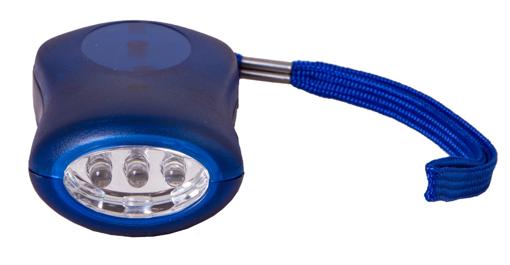 У динамо-фонаря Bresser Junior никогда не разрядятся батарейки – они ему просто не нужны! На корпусе расположен рычаг, нажимая на который вы вырабатываете электроэнергию для работы фонаря. Благодаря использованию светодиодов вместо ламп накаливания фонарь очень надежен (светодиод не перегорит от тряски и толчков) и экономичен – заряда встроенных аккумуляторов хватает на 10 минут непрерывного свечения. Три светодиода обеспечивают высокую яркость освещения. В комплекте имеется ремешок на руку, который поможет не уронить фонарь в любой ситуации. Комплектация: