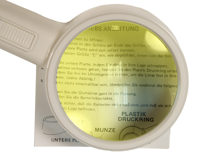 Увеличение: 2 крата. Диаметр линзы: 90 мм. С подсветкой