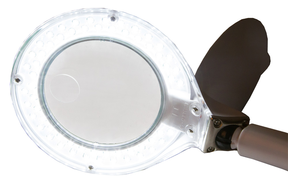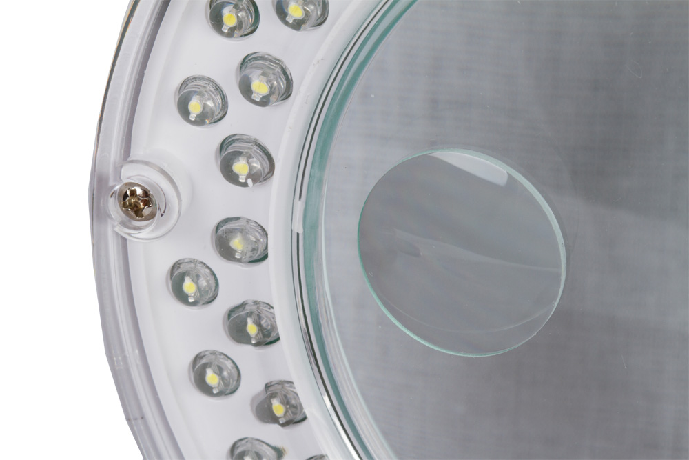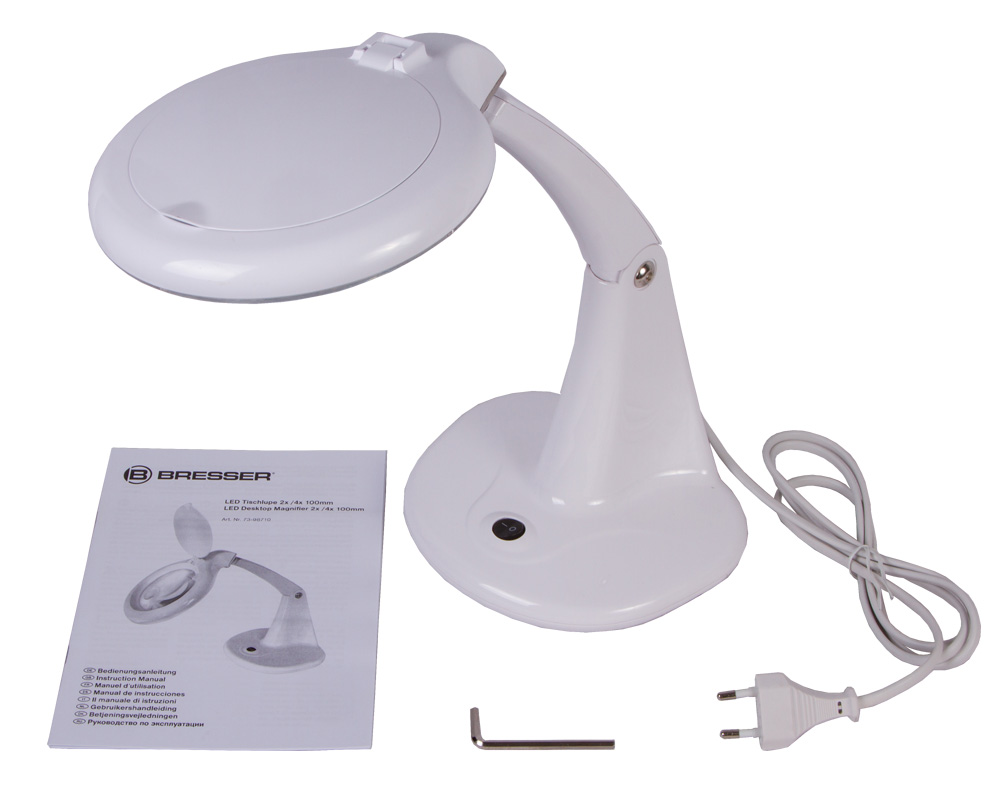 Настольная лупа Bresser 2х/4x освободит ваши руки и поможет вам в выполнении множества дел. Вы сможете свободно поместить ее над любимой книгой, домашним рукоделием или незаконченной масштабной моделью. С этой лупой любую работу, требующую точности и аккуратности, выполнять станет очень легко. Настольная лупа Bresser 2х/4x имеет бифокальную линзу. Увеличение основной линзы – 2 крат, дополнительной – 4 крат. Лупа имеет встроенную подсветку, работающую от сети. По периметру линзы расположено 60 ярких светодиодов, которые позволят не прекращать любимые занятия даже при отсутствии внешнего освещения. Линзу можно закрыть специальной крышкой для защиты ее от повреждений в то время, когда вы не работаете с лупой. Особенности: