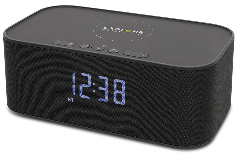 Помимо функции часов этот гаджет от Explore Scientific имеет встроенный будильник, может использоваться как портативная аудиоколонка и зарядное устройство для смартфонов и планшетов. К тому же прибор стильно и интересно выглядит, поэтому способен стать украшением интерьера и приятным подарком близкому человеку.