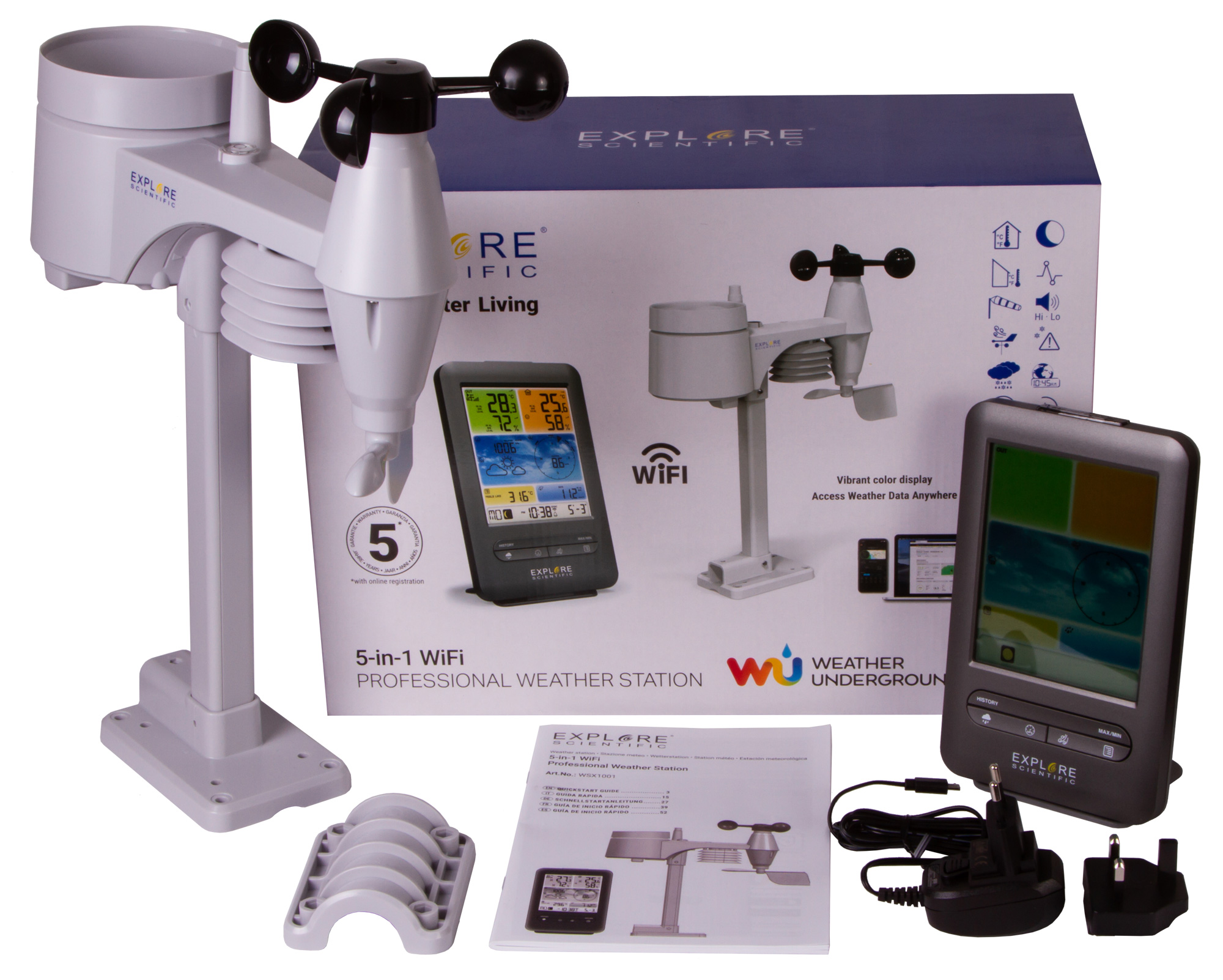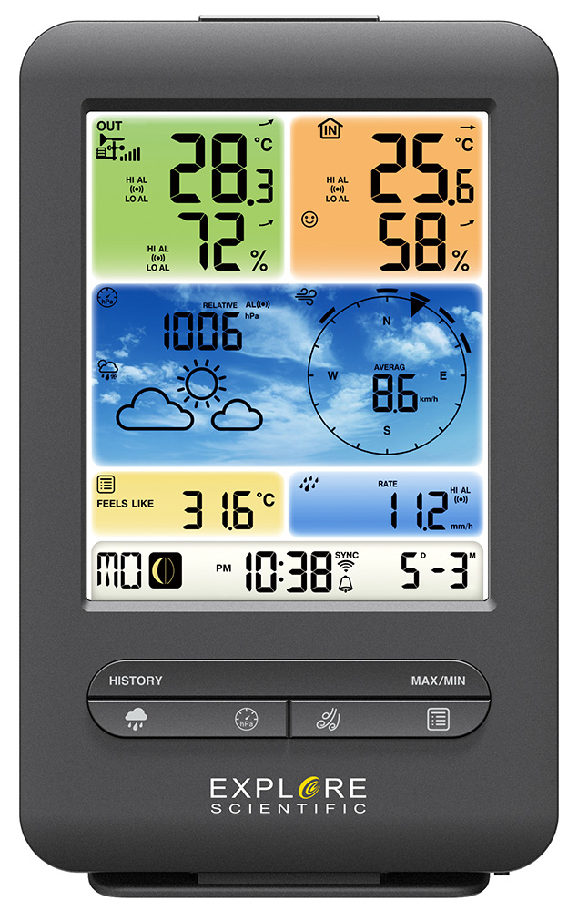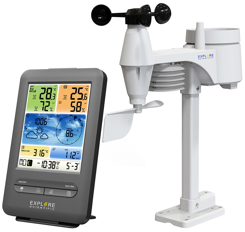 Добавить вопрос/отзыв о Метеостанция Explore Scientific «5 в 1» Wi-Fi с цветным дисплеем, черная: