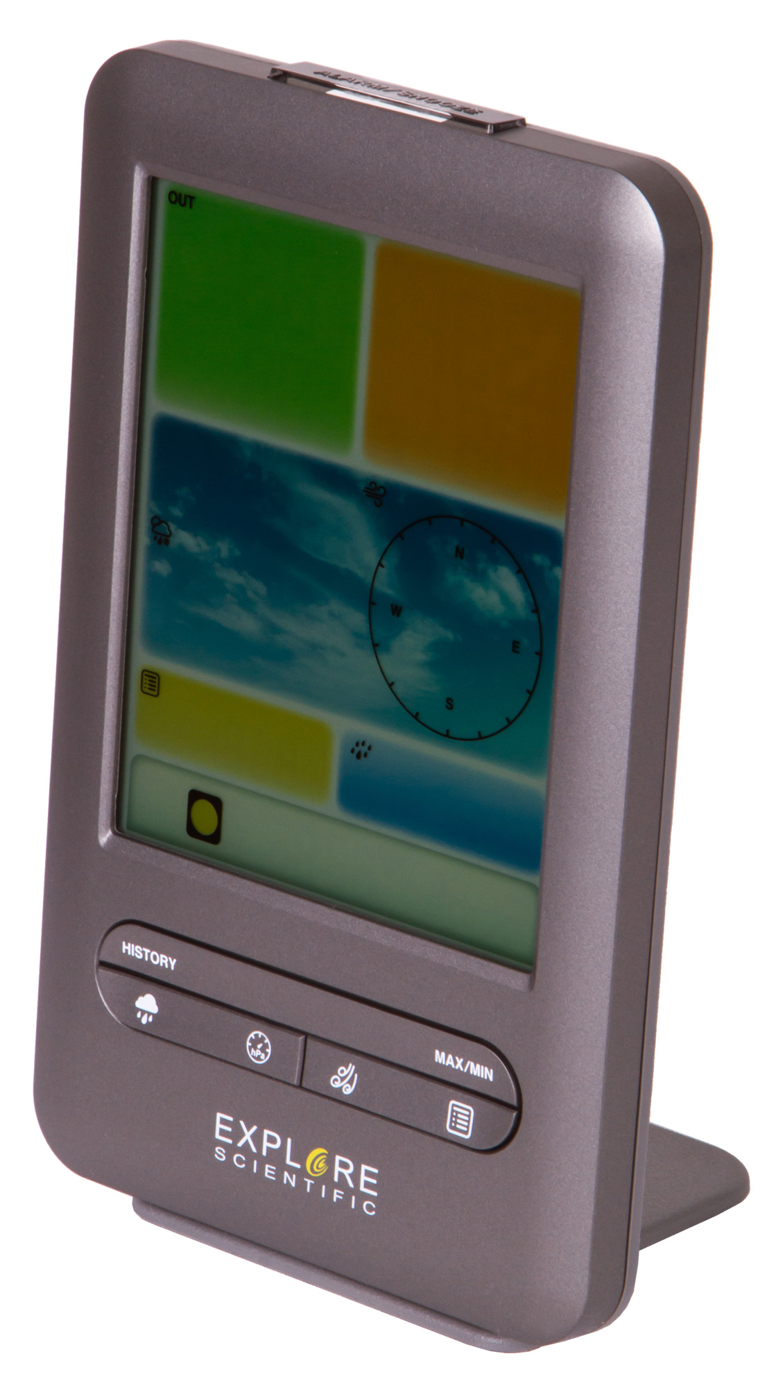 Метеостанция Explore Scientific «5 в 1» Wi-Fi способна рассказать все о погоде за окном и о микроклимате в доме. Она измеряет температуру, влажность воздуха и атмосферное давление, определяет уровень осадков, скорость и направление ветра. Также она показывает текущее время, дату и может разбудить на работу встроенным будильником. Вся информация выводится на встроенный цветной экран крупно и понятно. К тому же метеостанция умеет работать с популярными погодными приложениями, что еще больше расширяет ее функционал.