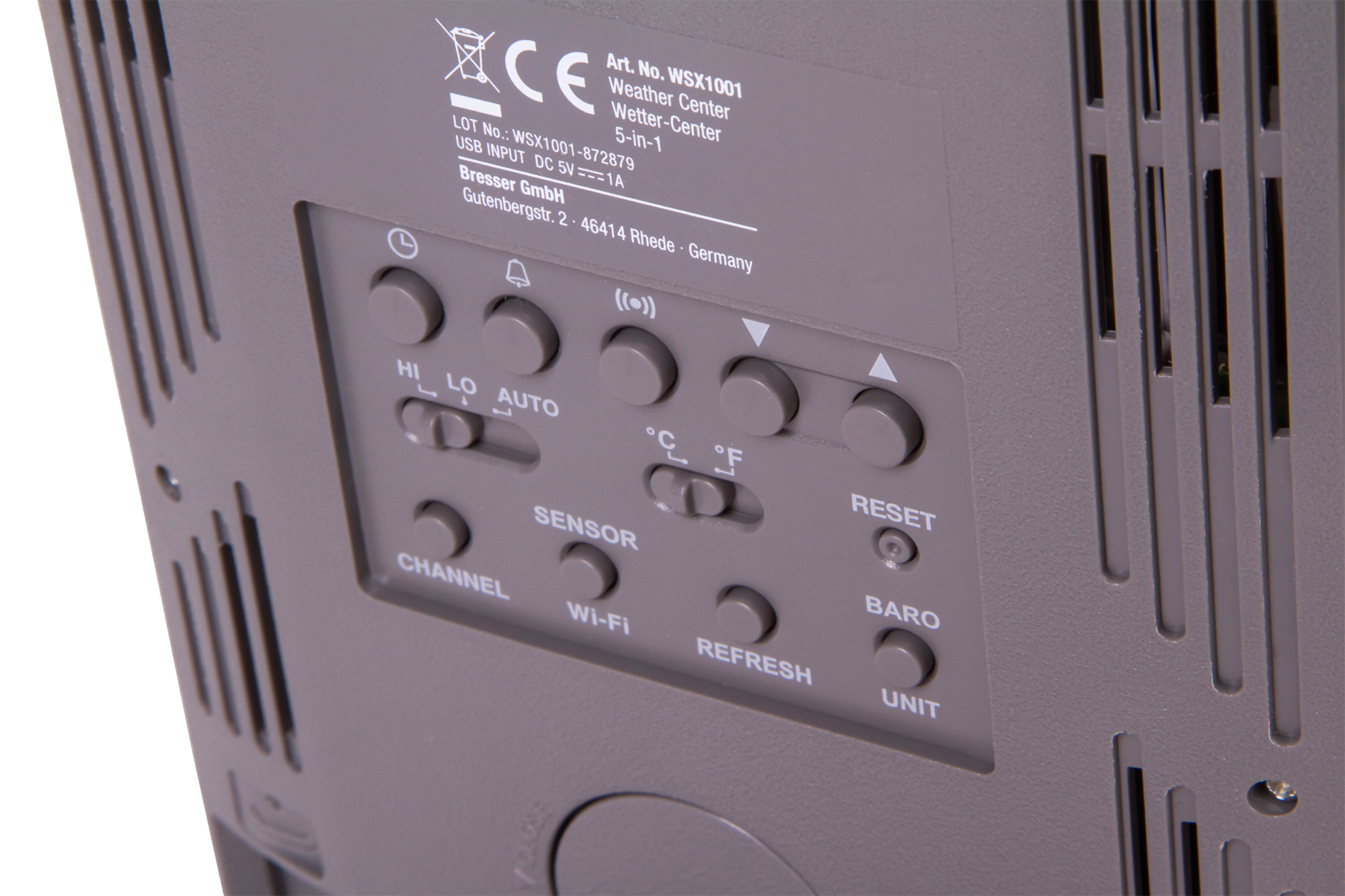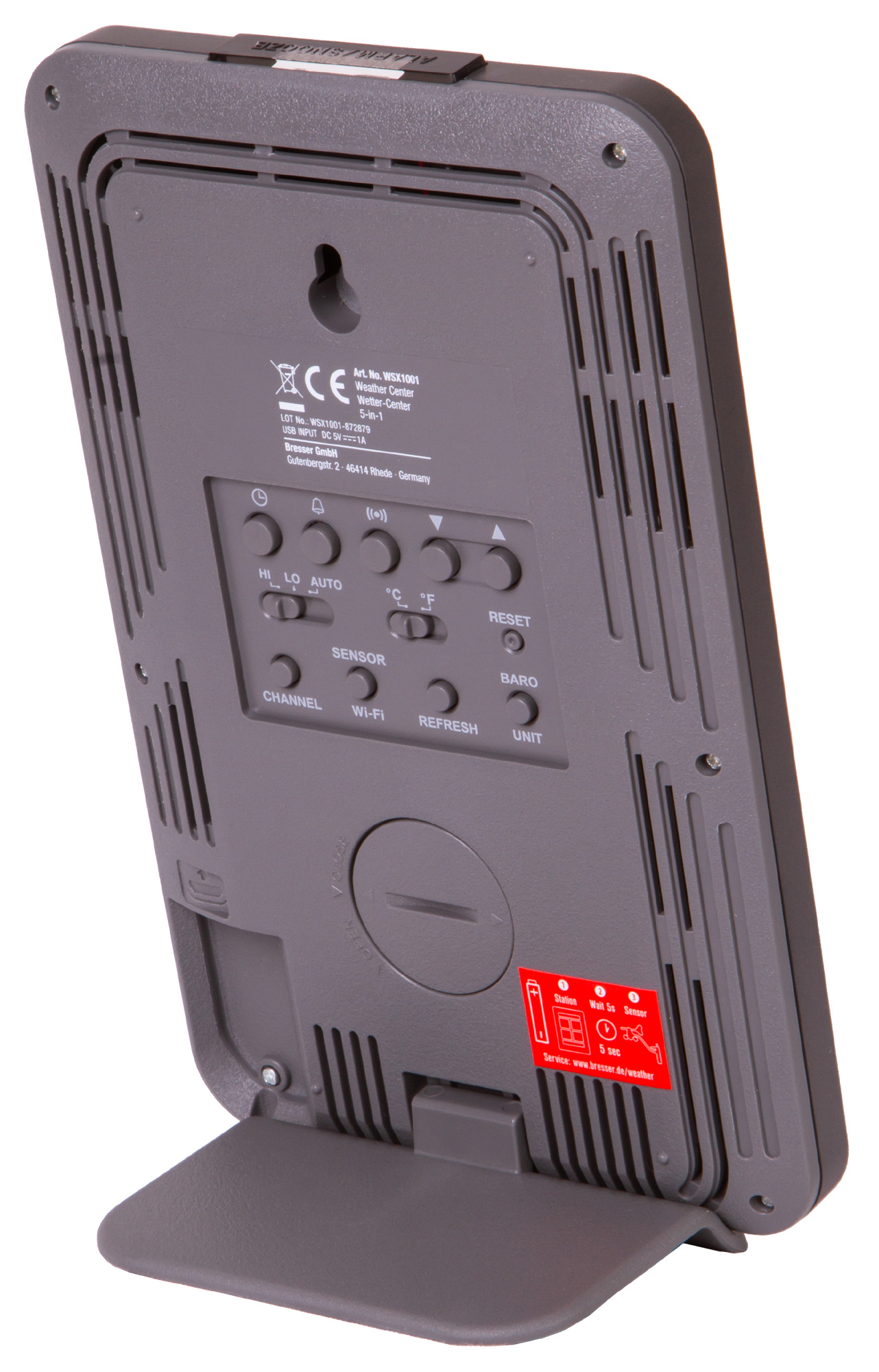 Для питания основного блока используется сеть переменного тока, метеодатчик работает от батареек. Чтобы не потерять настройки во время перепадов напряжения или отключения электроэнергии, рекомендуется дополнительно установить в основной блок резервную батарейку. Она уже включена в комплект поставки.